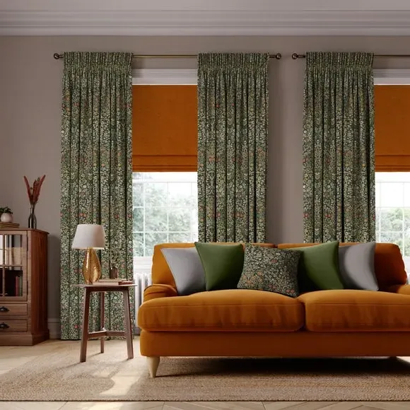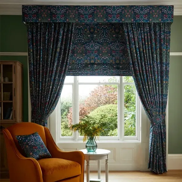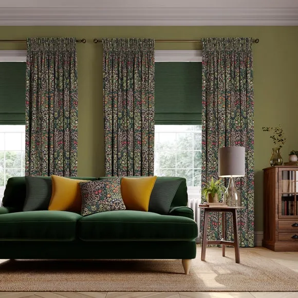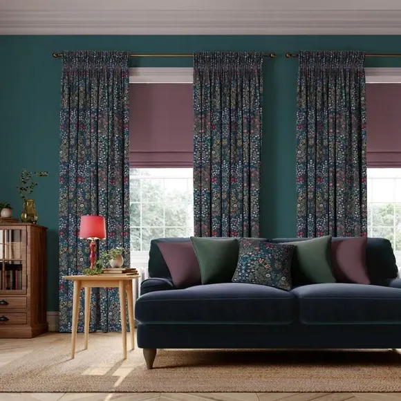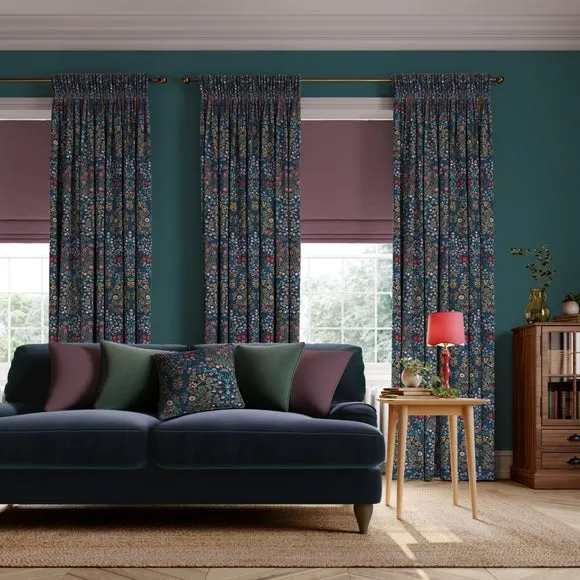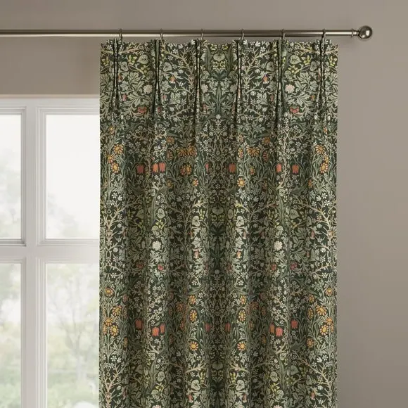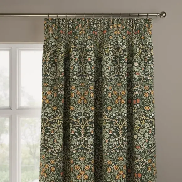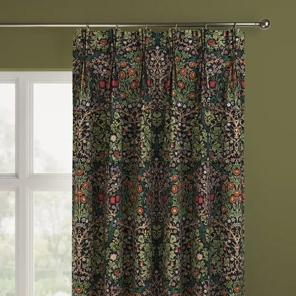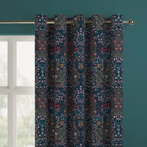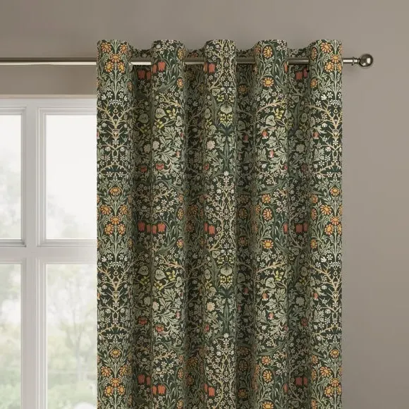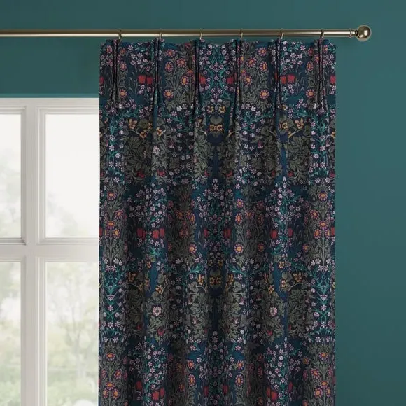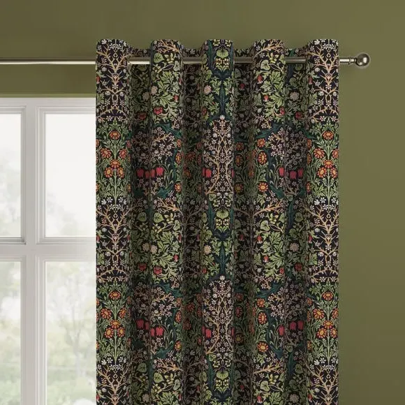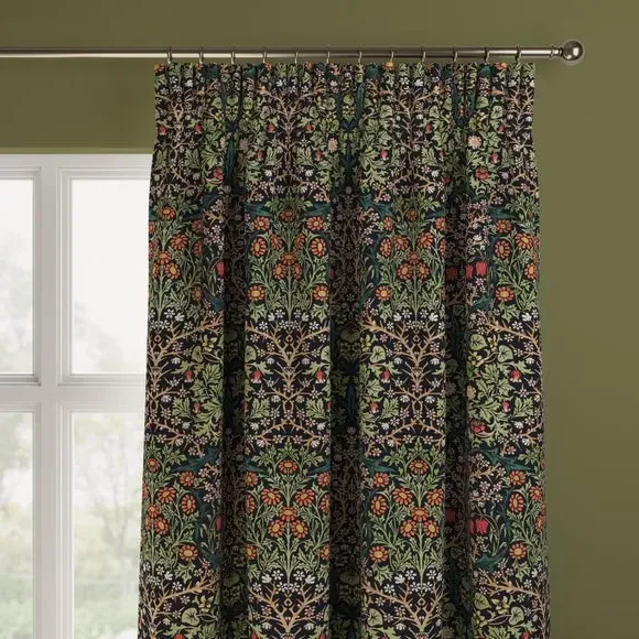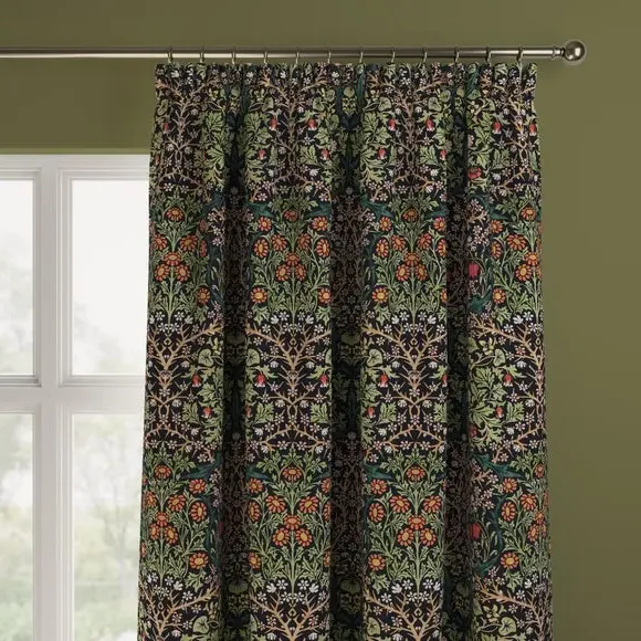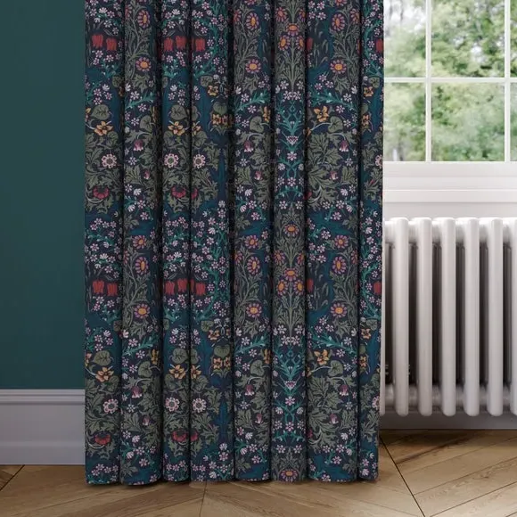 * Exclusive colourways to Dunelm* Selection of header types available* Available in a range of linings* Made to your individual measurements* Made from recycled polyester The intricate Blackthorn print was originally designed in 1892, the Art Nouveau print features hawthorn, daisies, tulips and foliage block-printed onto paper, lending the design a hand-painted look. Using plant formation as the protagonist, this symmetrical design is integral to William Morris’ work and will lend sublime style to any interior. Whether your home is modern or traditional, the Blackthorn print adds a touch of style and durability, making it an ideal choice for any living space. Please note: If your measured width is over 124cm your curtains will come with a fabric join to provide the full width required.