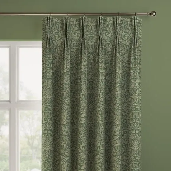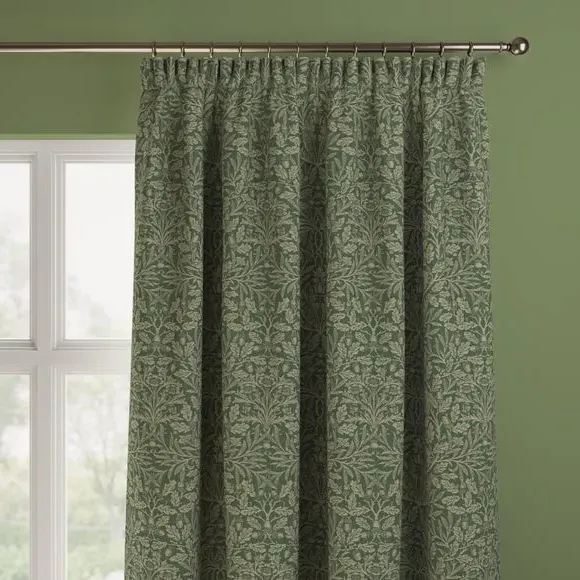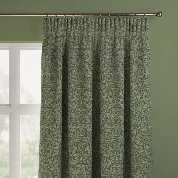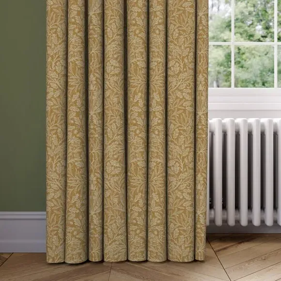* Soft and durable Polycotton composition* Arts and Crafts design* Available in a selection of header and lining options* Coordinating Made to Measure and Made to Order items available to purchase separately Designed by William Morris in 1879, the Acorn curtains feature an intricate arts and crafts pattern of oak leaves, acorns, and delicate flowers. This historic design brings an elegant, nature-inspired aesthetic to your home while the polycotton fabric ensures lasting durability. Please note: If your measured width is over 124cm your curtains will come with a fabric join to provide the full width required.