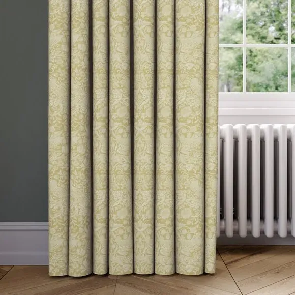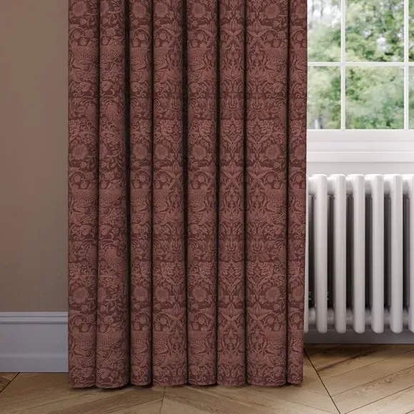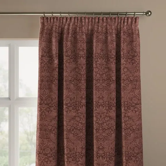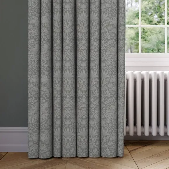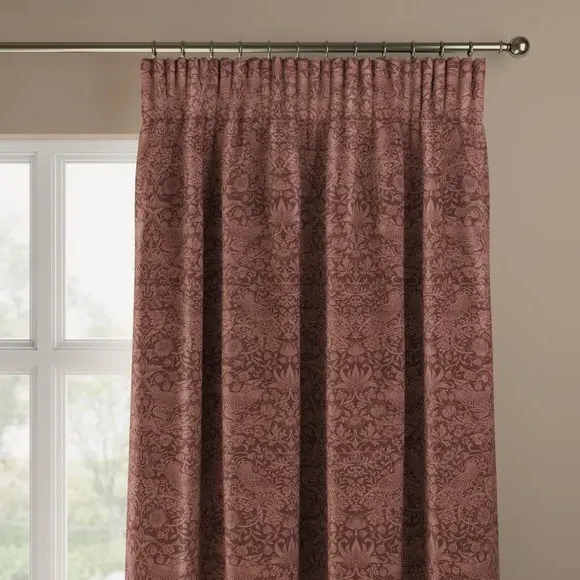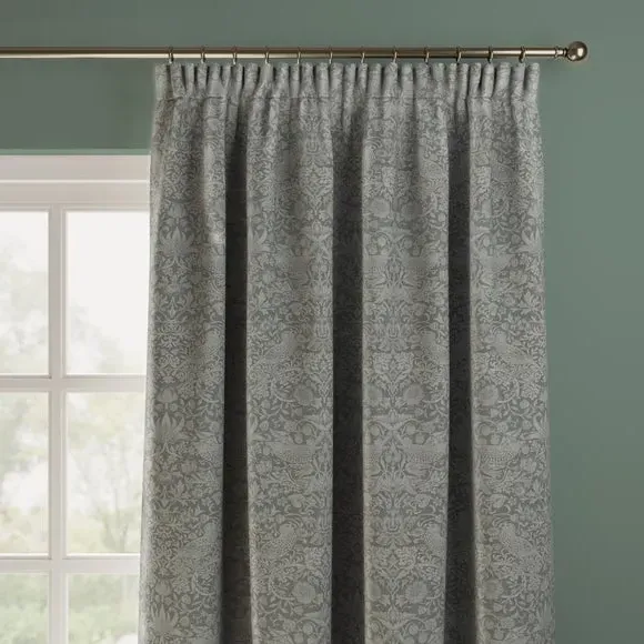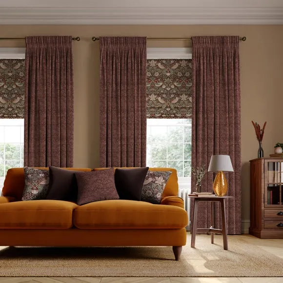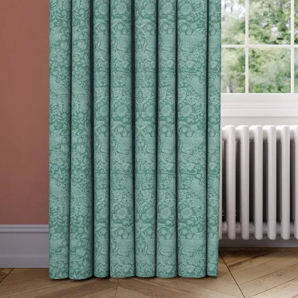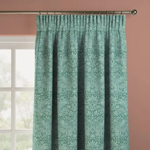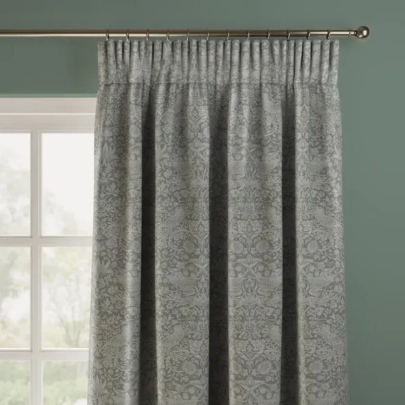 * Exclusive colourways to Dunelm* Selection of header types available* Available in a range of linings* Made to your individual measurements* Made in the UK Perhaps William Morris’s most recognisable design, Strawberry Thief Tonal design was inspired by the thrushes that crept under Morris’s strawberry nets in his garden at Kelmscott Manor, Oxfordshire. The original pattern took several days to print using hand-carved woodblocks to build up the different colours, and ‘Strawberry Thief’ was consequently one of Morris’s firm’s most expensive cottons. Whilst waiting to see the first piece printed, Morris endured sleepless nights in his lodgings at Merton Abbey. Designed in 1883, Strawberry Thief remains one of William Morris’s most popular and iconic designs. Pairing iconic William Morris patterns with excellent British manufacturing, our Made to Measure service brings you a selection of beautiful William Morris At Home designs, with exclusive colourways to Dunelm, allowing you to create a uniquely individual look in your home. Available in a range of headers, these curtains can be paired with matching Roman Blinds, or Made to Order Tiebacks and Cushion Covers to give your home a beautifully coordinated finish. Book an appointment with one of our expert consultants who will guide you through the process of creating your very own made to measure curtains. Please note: If your measured width is over 124cm your curtains will come with a fabric join to provide the full width required.