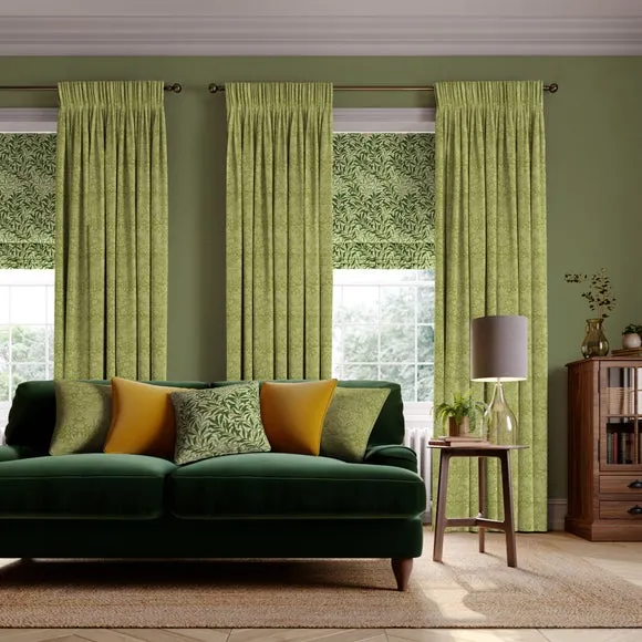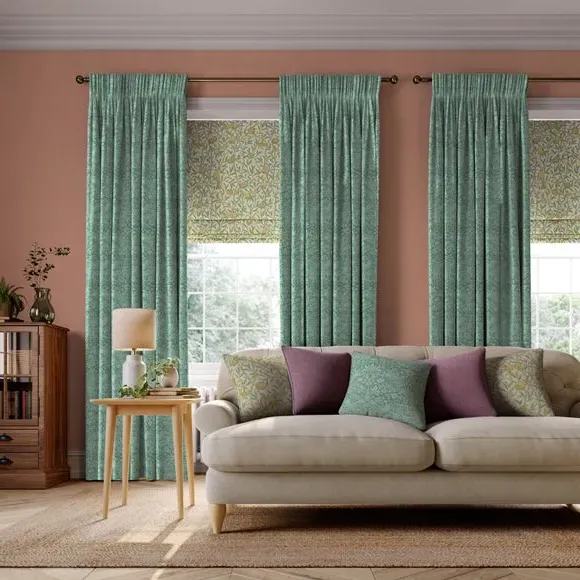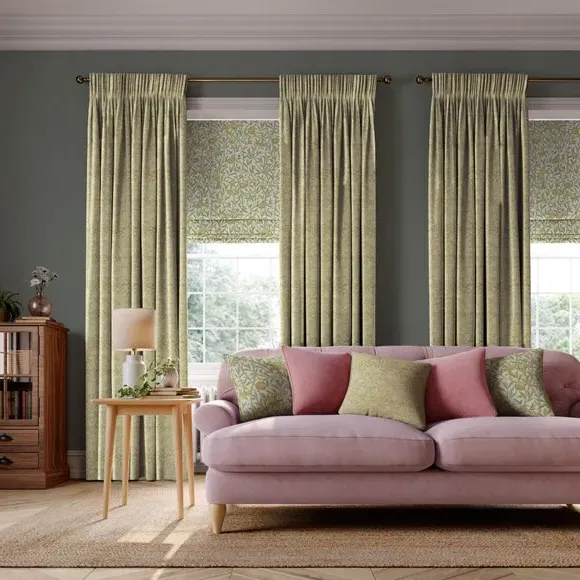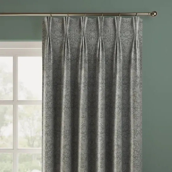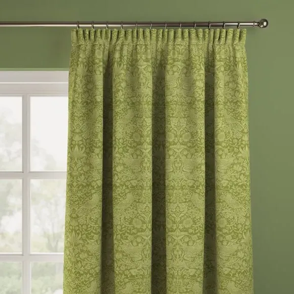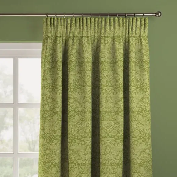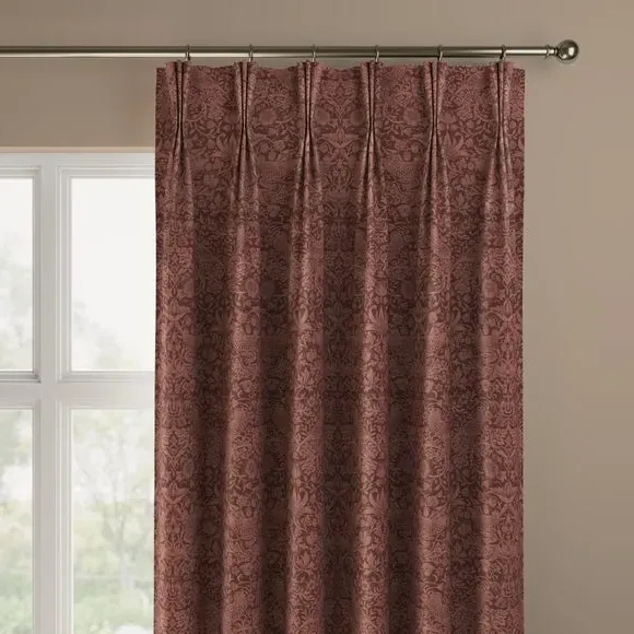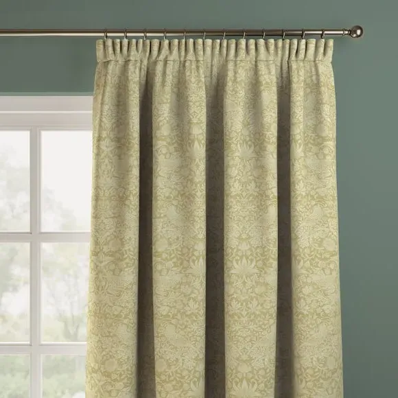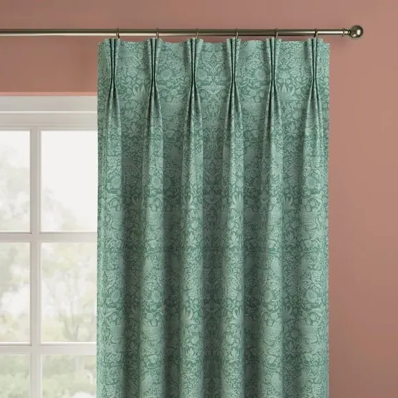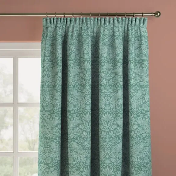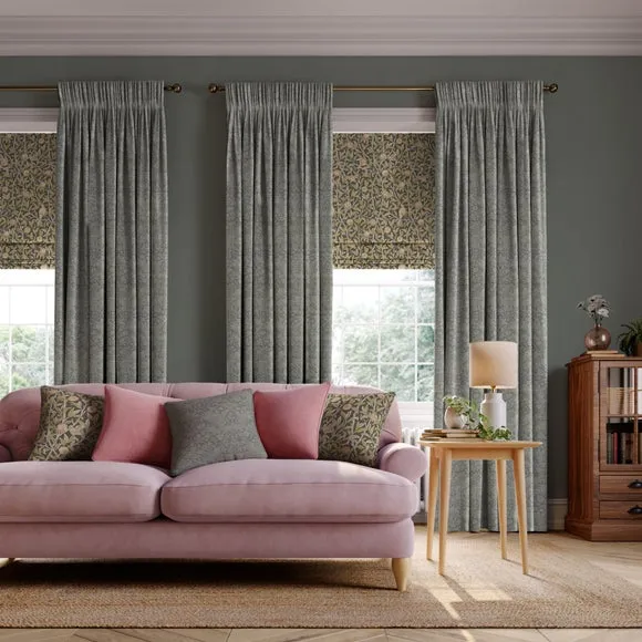 * Exclusive colourways to Dunelm* Selection of header types available* Available in a range of linings* Made to your individual measurements* Made in the UK Perhaps William Morris’s most recognisable design, Strawberry Thief Tonal design was inspired by the thrushes that crept under Morris’s strawberry nets in his garden at Kelmscott Manor, Oxfordshire. The original pattern took several days to print using hand-carved woodblocks to build up the different colours, and ‘Strawberry Thief’ was consequently one of Morris’s firm’s most expensive cottons. Whilst waiting to see the first piece printed, Morris endured sleepless nights in his lodgings at Merton Abbey. Designed in 1883, Strawberry Thief remains one of William Morris’s most popular and iconic designs. Pairing iconic William Morris patterns with excellent British manufacturing, our Made to Measure service brings you a selection of beautiful William Morris At Home designs, with exclusive colourways to Dunelm, allowing you to create a uniquely individual look in your home. Available in a range of headers, these curtains can be paired with matching Roman Blinds, or Made to Order Tiebacks and Cushion Covers to give your home a beautifully coordinated finish. Book an appointment with one of our expert consultants who will guide you through the process of creating your very own made to measure curtains. Please note: If your measured width is over 124cm your curtains will come with a fabric join to provide the full width required.