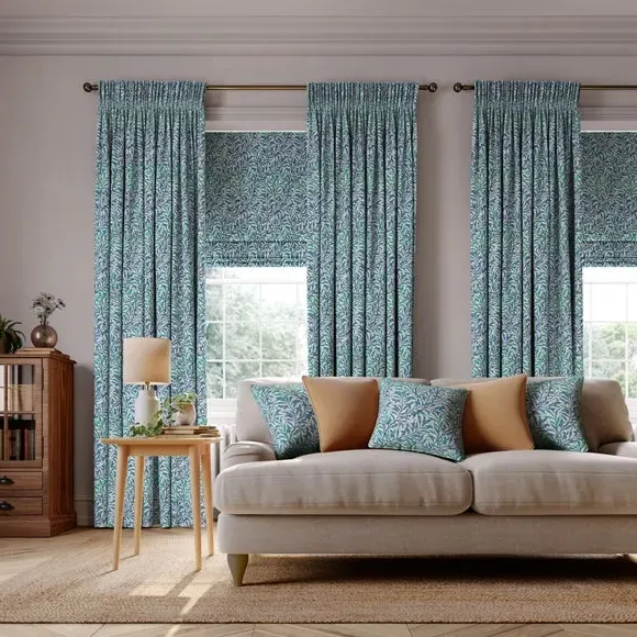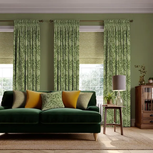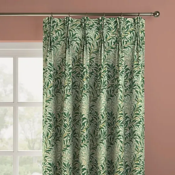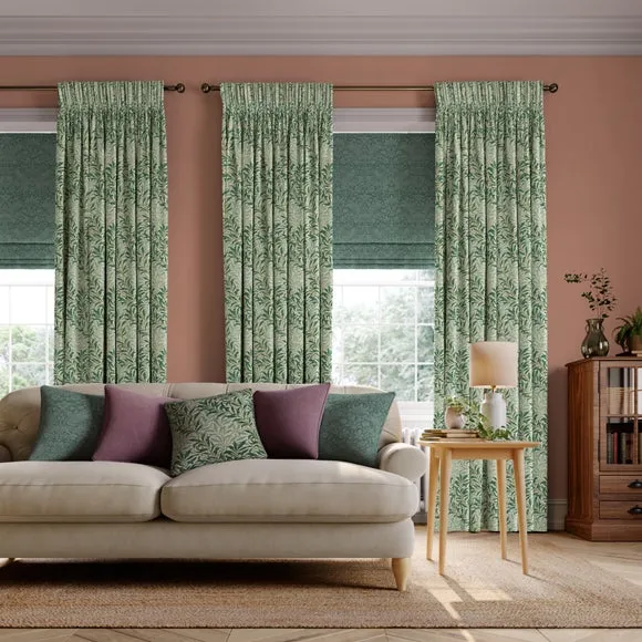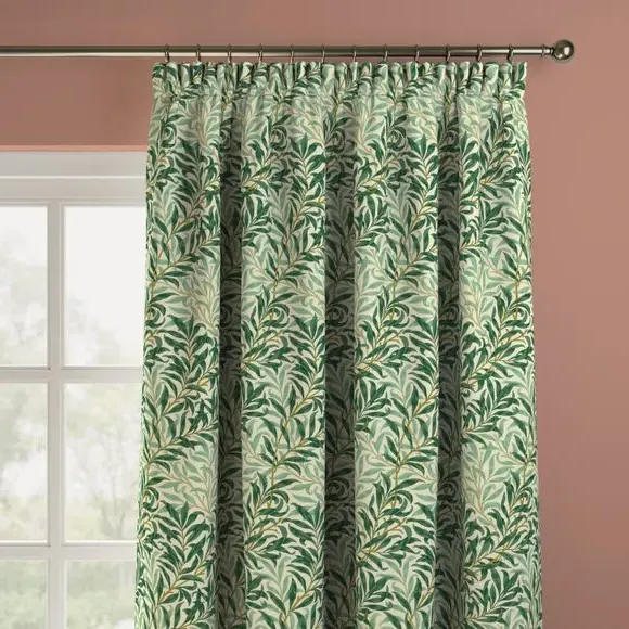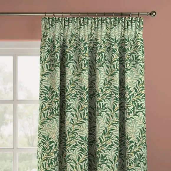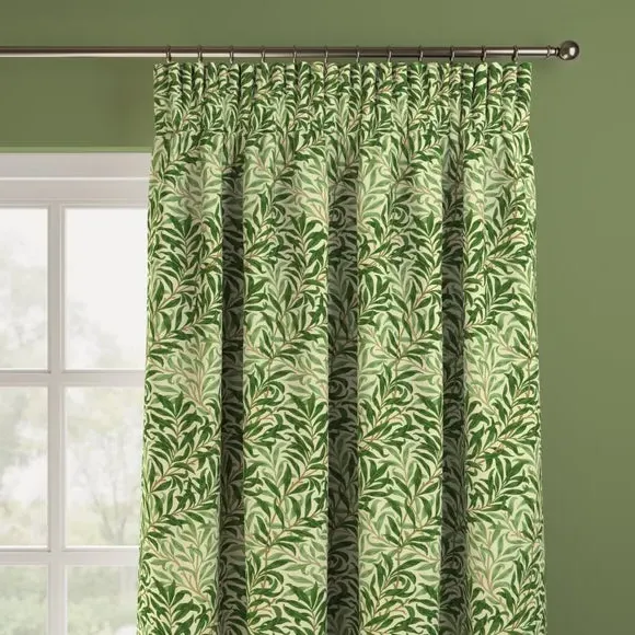 * Exclusive colourways to Dunelm* Selection of header types available* Available in a range of linings* Made to your individual measurements* Made in the UK This iconic pattern forms a part of The William Morris Gallery’s collection in earlier printed chintz and wallpaper lengths. The design is based on the natural willow form which was one of William Morris’ favourite motifs. Originally designed by William Morris as a wallpaper in 1887 and adapted for fabric in 1895, it was block printed in a diagonal branch pattern at Merton Abbey and combines abstraction with a gentle reminder to the outdoors. Pairing iconic William Morris patterns with excellent British manufacturing, our Made to Measure service brings you a selection of beautiful William Morris At Home designs, with exclusive colourways to Dunelm, allowing you to create a uniquely individual look in your home. Available in a range of headers, these curtains can be paired with matching Roman Blinds, or Made to Order Tiebacks and Cushion Covers to give your home a beautifully coordinated finish. Book an appointment with one of our expert consultants who will guide you through the process of creating your very own made to measure curtains. Please note: If your measured width is over 124cm your curtains will come with a fabric join to provide the full width required.