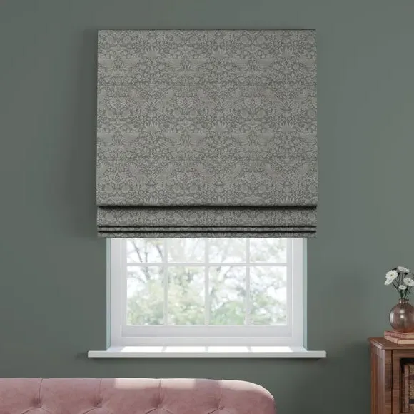 * Exclusive colourways to Dunelm* Choose from 3 linings* Can be installed inside or outside the recess* Pick a side for the operating chain* Made in the UK Perhaps William Morris’s most recognisable design, Strawberry Thief Tonal was inspired by the thrushes that crept under Morris’s strawberry nets in his garden at Kelmscott Manor, Oxfordshire. The original pattern took several days to print using hand-carved woodblocks to build up the different colours, and ‘Strawberry Thief’ was consequently one of Morris’s firm’s most expensive cottons. Whilst waiting to see the first piece printed, Morris endured sleepless nights in his lodgings at Merton Abbey. Designed in 1883, Strawberry Thief remains one of William Morris’s most popular and iconic designs. Pairing iconic William Morris patterns with excellent British manufacturing, our Made to Measure service brings you a selection of beautiful William Morris At Home designs, with exclusive colourways to Dunelm, allowing you to create a uniquely individual look in your home. Available in a range of linings, these roman blinds can be paired with matching Curtains or Made to Order Tiebacks and Cushion Covers to give your home a beautifully coordinated finish. Book an appointment with one of our expert consultants who will guide you through the process of creating your very own Made to Measure Roman Blinds. Please note: If your measured width is over 130cm your blinds may come with a fabric join to provide the full width required.