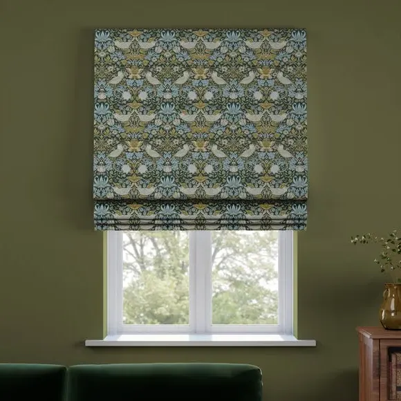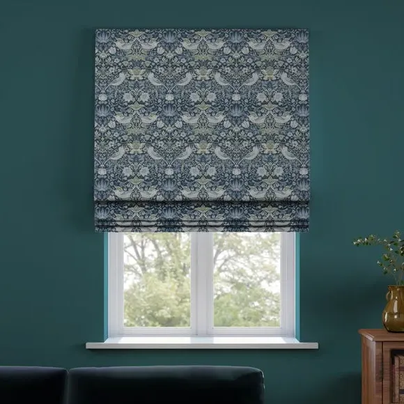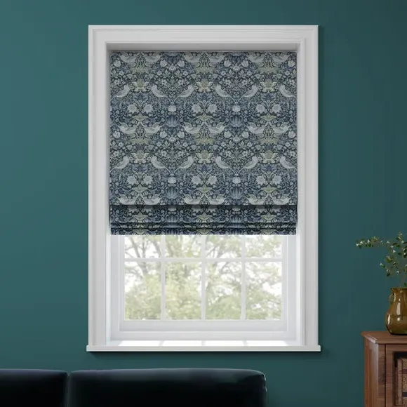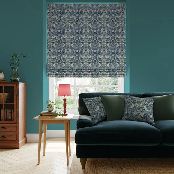 * Exclusive colourways to Dunelm* Choose from 3 linings* Can be installed inside or outside the recess* Pick a side for the operating chain* Made in the UK Perhaps William Morris’s most recognisable design, Strawberry Thief was inspired by the thrushes that crept under Morris’s strawberry nets in his garden at Kelmscott Manor, Oxfordshire. The original pattern took several days to print using hand-carved woodblocks to build up the different colours, and ‘Strawberry Thief’ was consequently one of Morris’s firm’s most expensive cottons. Whilst waiting to see the first piece printed, Morris endured sleepless nights in his lodgings at Merton Abbey. Designed in 1883, Strawberry Thief remains one of William Morris’s most popular and iconic designs. Pairing iconic William Morris patterns with excellent British manufacturing, our Made to Measure service brings you a selection of beautiful William Morris At Home designs, with exclusive colourways to Dunelm, allowing you to create a uniquely individual look in your home. Available in a range of linings, these roman blinds can be paired with matching Curtains or Made to Order Tiebacks and Cushion Covers to give your home a beautifully coordinated finish. Book an appointment with one of our expert consultants who will guide you through the process of creating your very own Made to Measure Roman Blinds. Please note: If your measured width is over 130cm your blinds may come with a fabric join to provide the full width required.