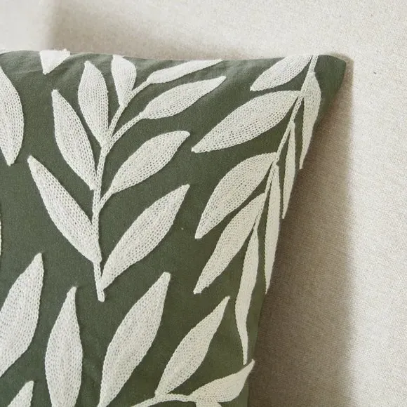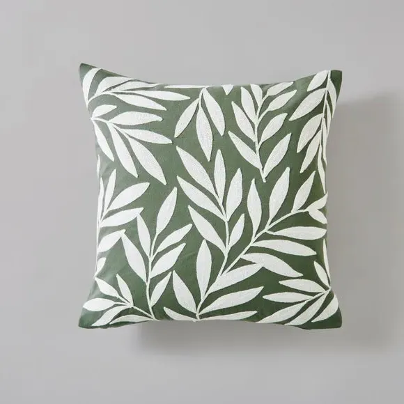 * Zip closure* Leafy design* 100% cotton* Machine washable Crafted with love and leafy embroidery, this Leaf Square Cushion Cover brings autumn inside without the raking. Machine washable with a secure zip closure, it’s your sofas new favourite leafy companion.