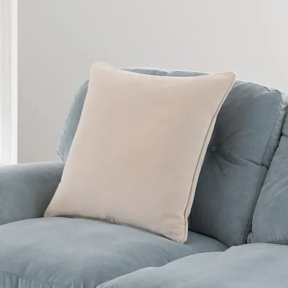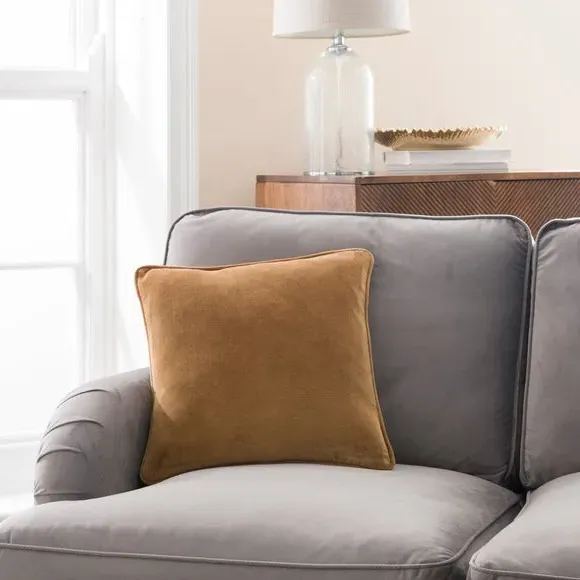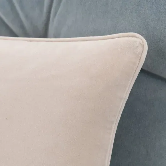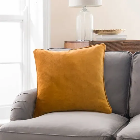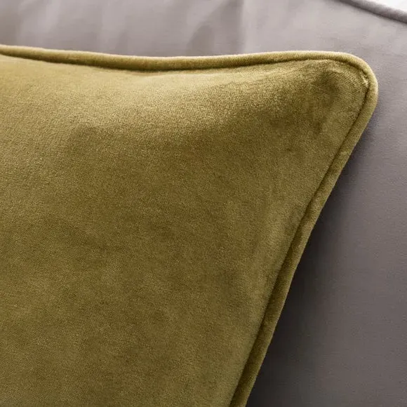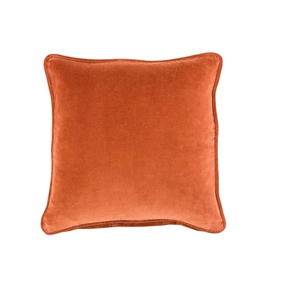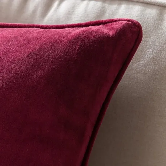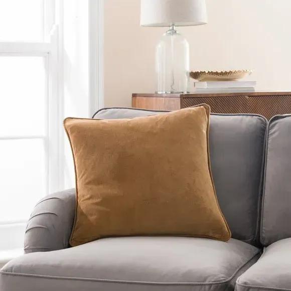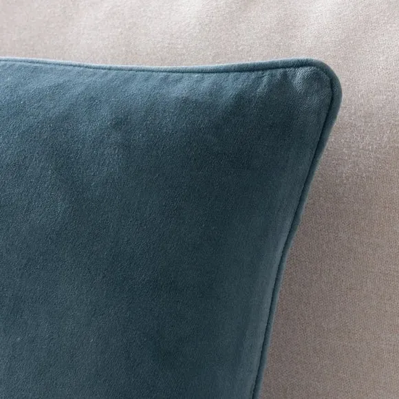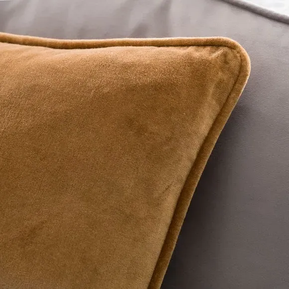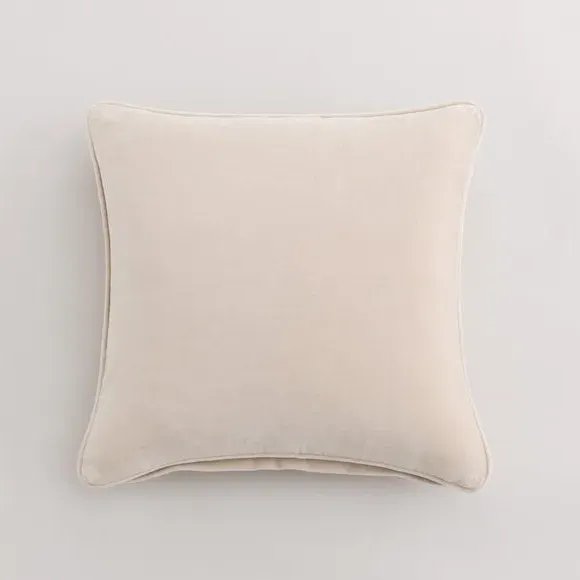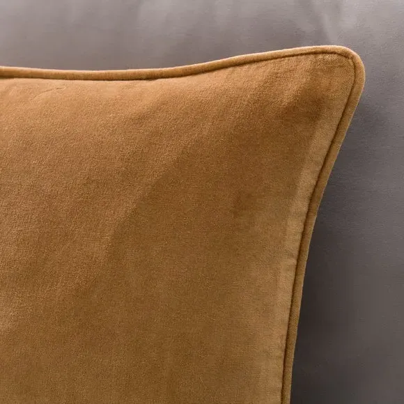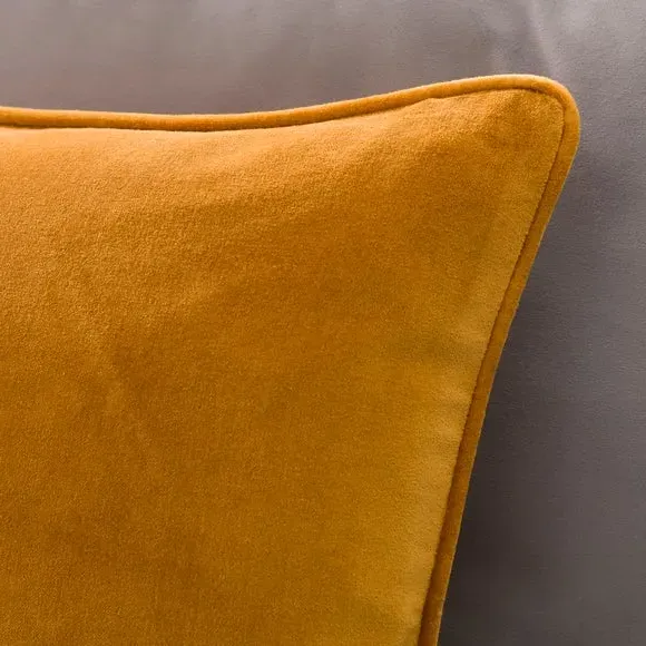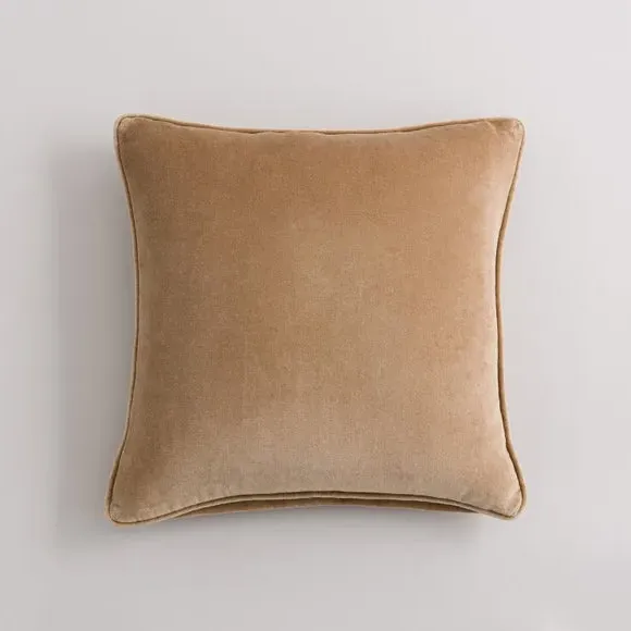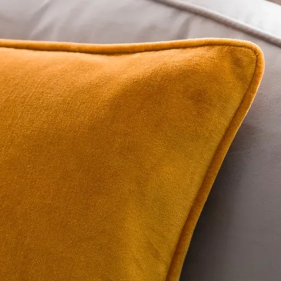 The cushion combines luxurious cotton velvet fabric with a feather insert for superior comfort. Its piped edge adds definition while the plump filling provides excellent support. The smooth velvet surface offers a soft touch, and the quality construction ensures lasting durability.