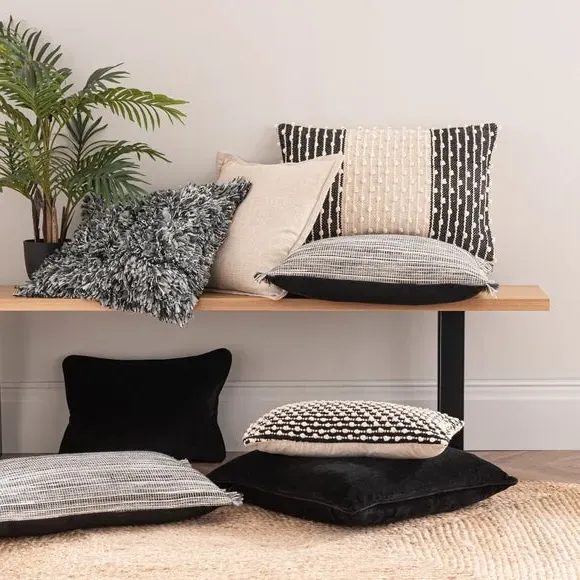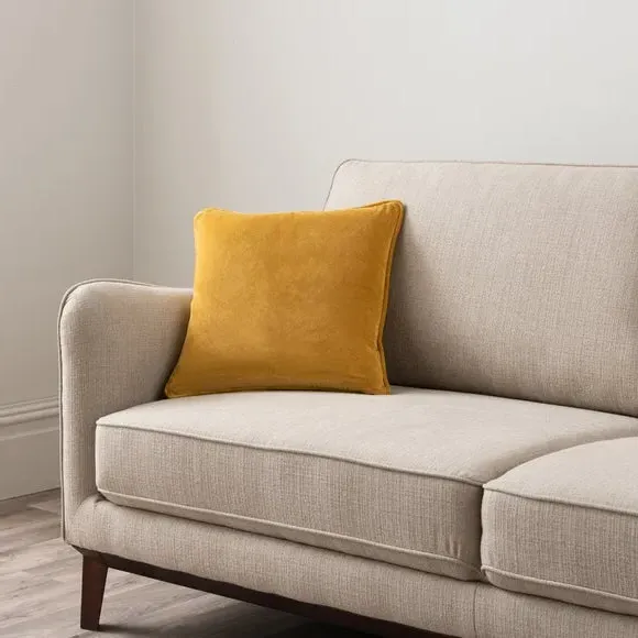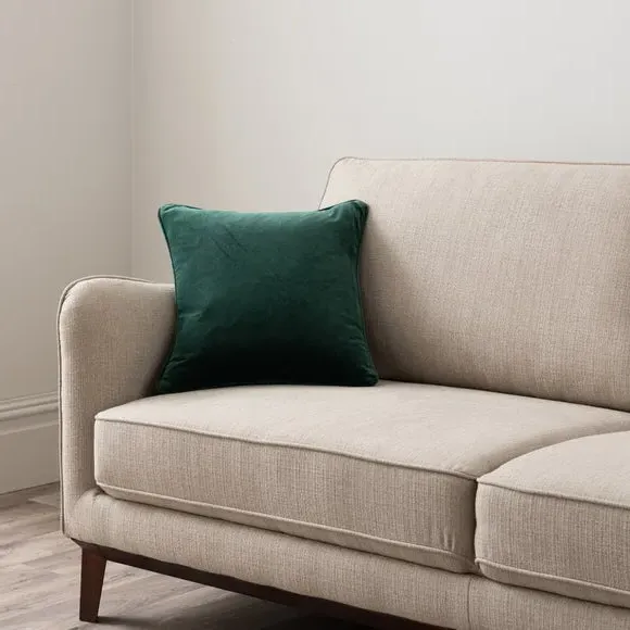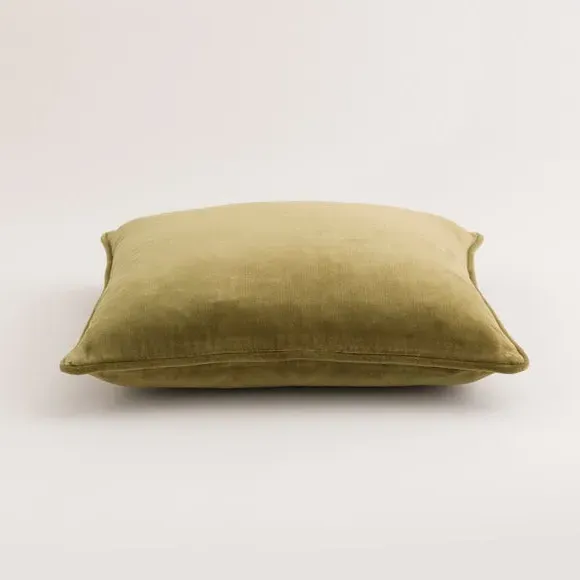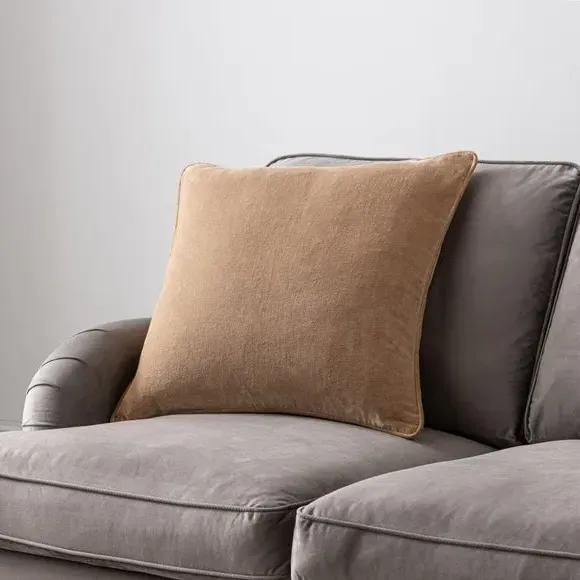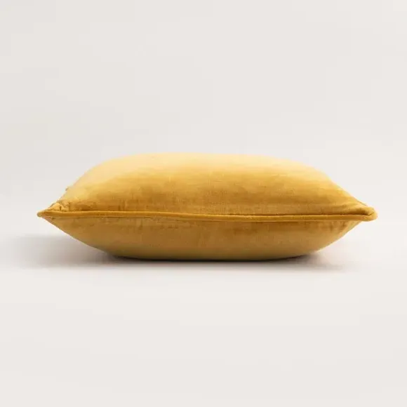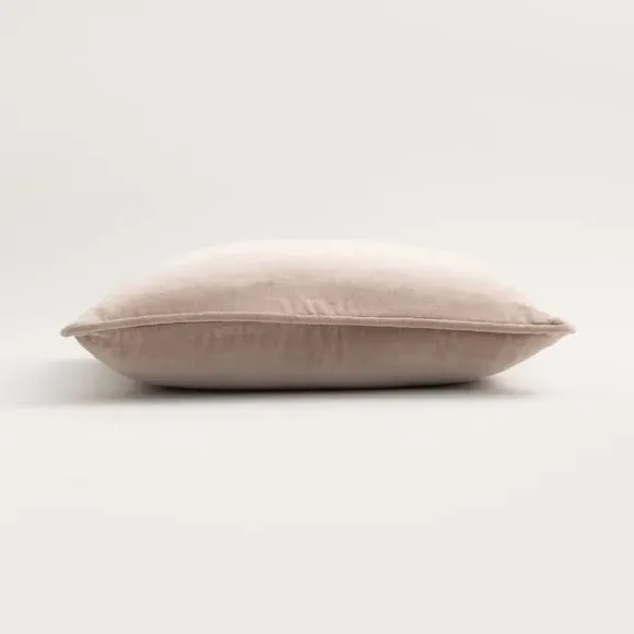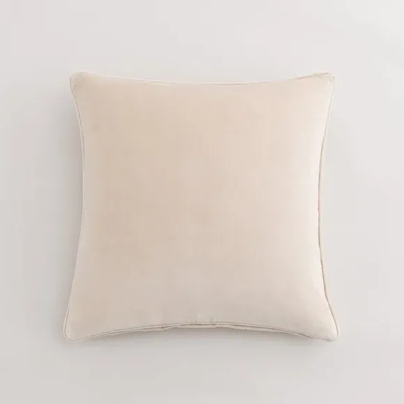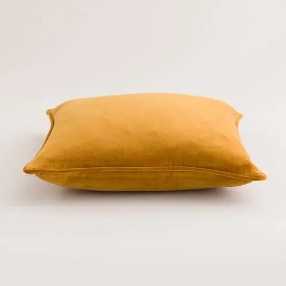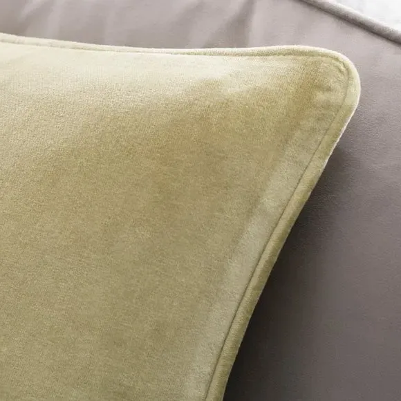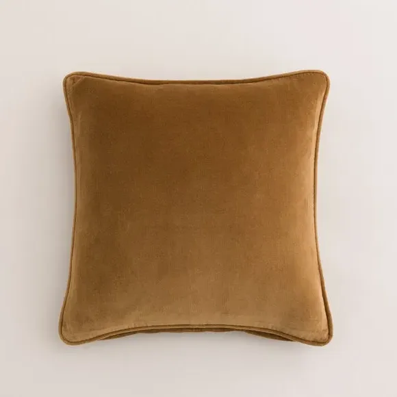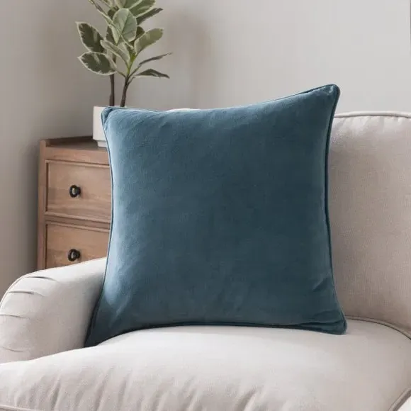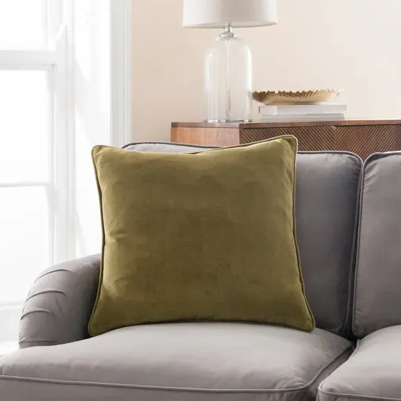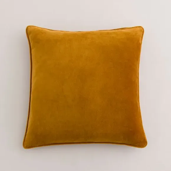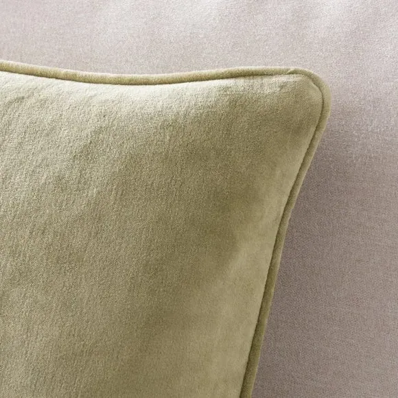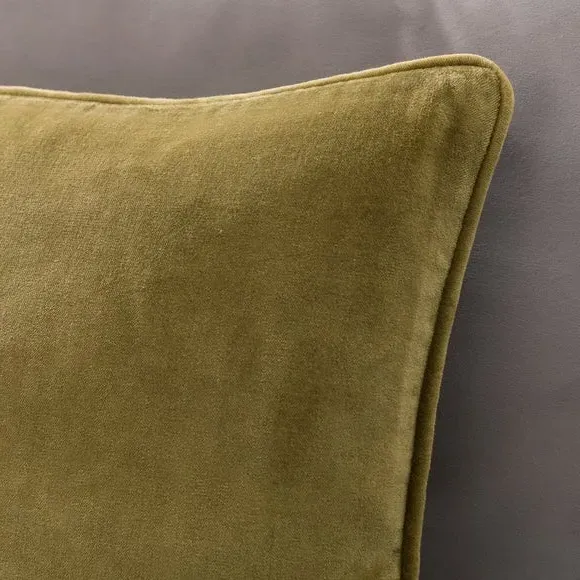 The cushion combines luxurious cotton velvet fabric with a feather insert for superior comfort. Its piped edge adds definition while the plump filling provides excellent support. The smooth velvet surface offers a soft touch, and the quality construction ensures lasting durability.