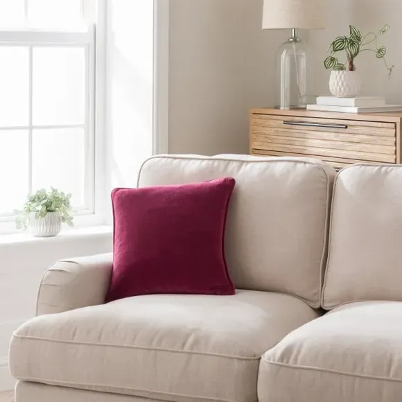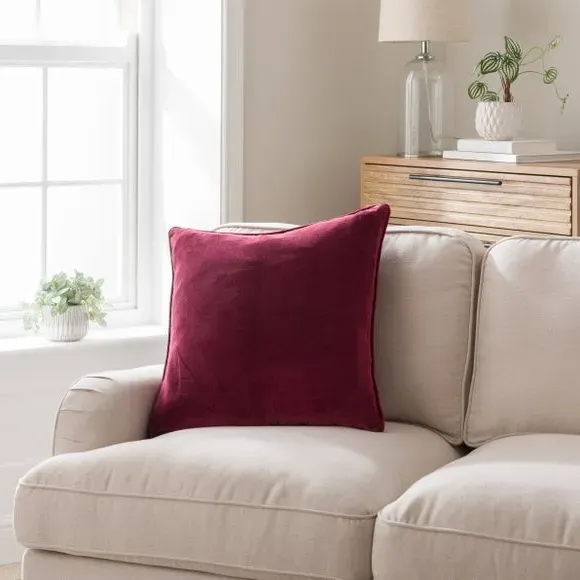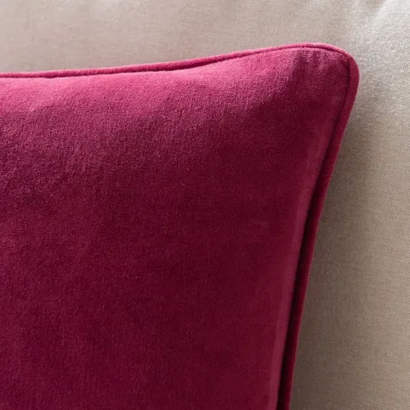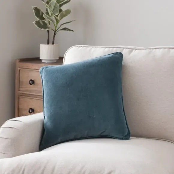 * Stylish Design* Plump Filling* Cotton Velvet Fabric Crafted with a cover made from a quality 100% cotton velvet, this plain cushion features a smart, piped edge and has been filled with a feather insert for ultimate comfort. This cushion is available in a range of stylish colours.