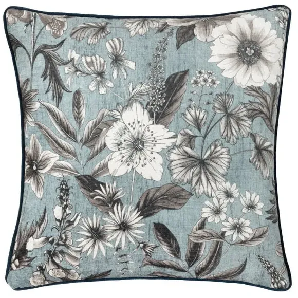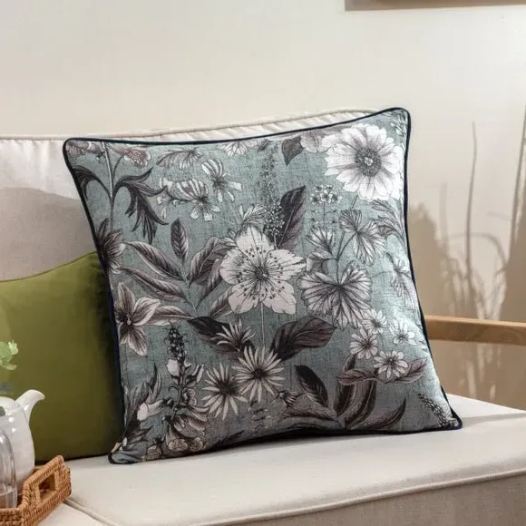Home  /  Bedding & Textile  /  Cushions  /  Square Cushion with Botanical Design - Petrol