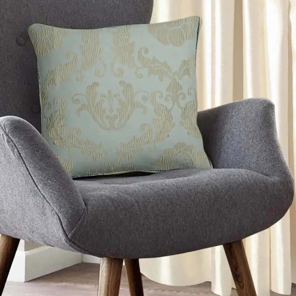 The cushion features delicate embroidery crafted with quality materials for lasting comfort and softness. Its zip enclosure provides easy maintenance, while the soft filling offers comfortable support for lounging or decorative use. The gentle green tone adds a calming touch to any space. Dimensions: 43 x 43cm per cushion.