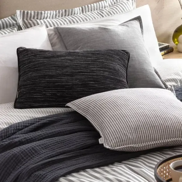 * Made from cotton* Textured ribbed design* Rectangle shape Inspired by the natural lines of sand on the seashore, the Yard Cove Cushion features a beautifully textured ribbed design. Crafted from super-soft 100% cotton, it is finished with a complementing cotton reverse, piped trim, and hidden zip fastening.