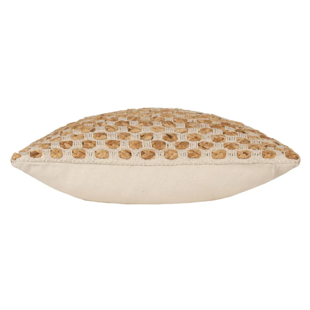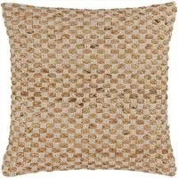 The Wikka Pecan cushion features jute threads with an oversized weave that creates distinctive texture and visual appeal. Its natural construction provides rustic character with original design elements, while the woven structure adds depth to soft furnishings. The natural fiber composition brings outdoor textures indoors with versatile placement options for various seating areas.
