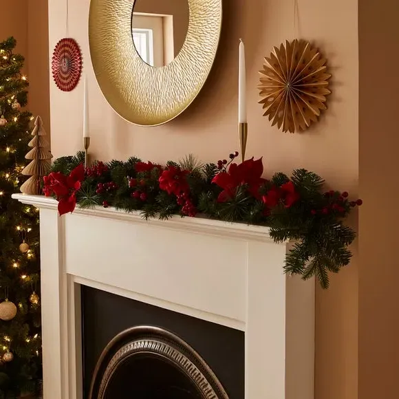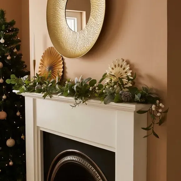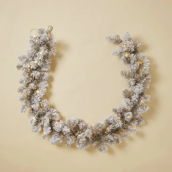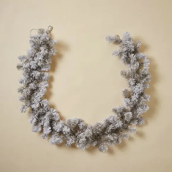 * 30 LE Ds* Made with flocked tinsel* Wrapped branch construction* 1.8 metres Our 1.8m LED Champagne Flocked Garland is the best way to add a tint of sparkle to your home this Christmas. Perfect for adding a warm and cosy glow to your indoor living space, this frosted look garland will bring the outdoors in for the most spectacular winter feel. With a wrapped branch construction and integrated LE Ds this garland is great for wrapping on banisters or placing as a centre piece on your fireplace mantel.