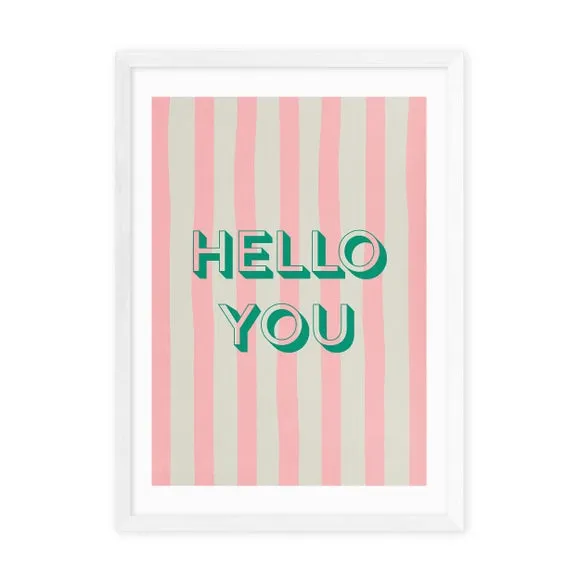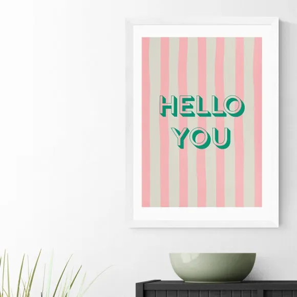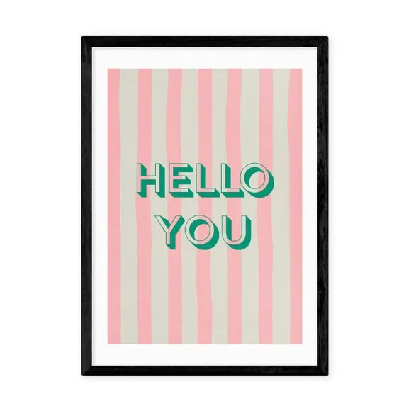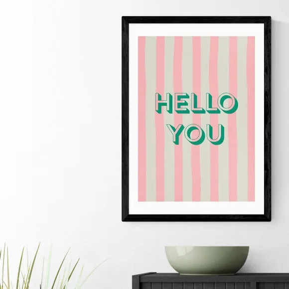 * Eye-catching striped design* 'Hello You' typography* Printed on 210gsm acid-free archival paper* Available in A1, A2, A3 & A4 size* Frame options: black, white and oak wood effect* Available in unframed option Welcome everyone to your home with this vibrant fade-resistant striped print, featuring the text, 'Hello You' in block letters. The contrasting colours lend it a retro vibe, and the inviting message is perfect for kitchens, hallways or other living areas. It's available in a range of frame options and sizes, including unframed, so you can tailor it to suit your space.