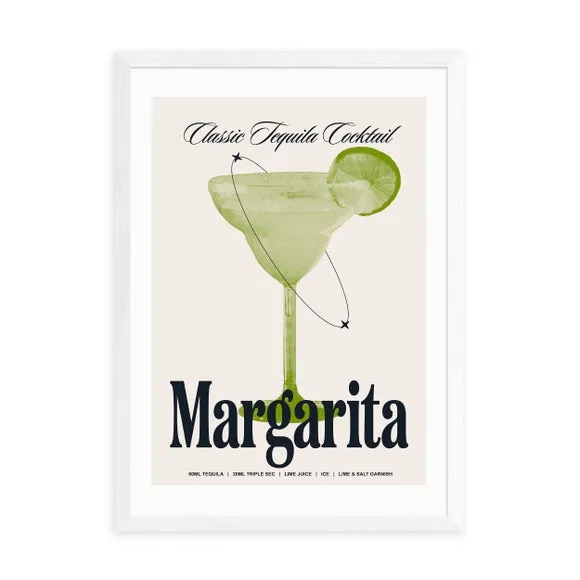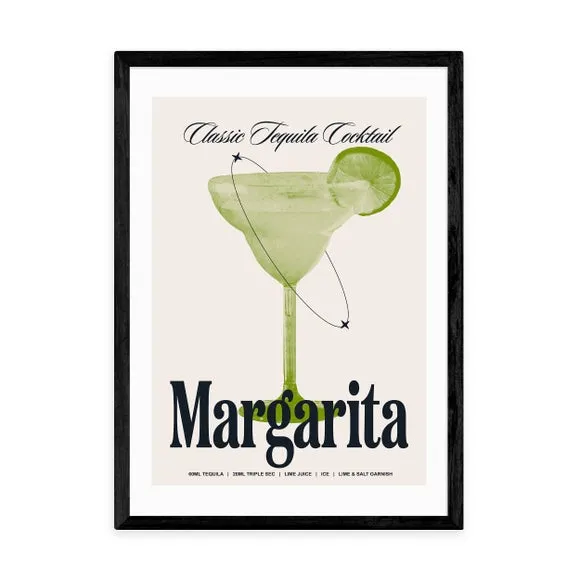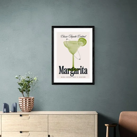 * Artwork by Hollie Graphik* Available in A1, A2, A3 & A4 sizes* Obeche Wood Frames available in black, white and oak effect* You can buy the print unframed too!* Prints are made using the Giclee printing process, lasting up to 70 years from fading* Printed on 210gsm acid free archival paper with a digital white border Celebrate your love for cocktails with this stylish Margarita print by Hollie Graphik, perfect for adding a bit of vintage styling to your kitchen or home bar. You are able to customise the size and frame for this print! Choose from a variety of frame options and then pick your size. This way you can find the best design to suit your home interior.