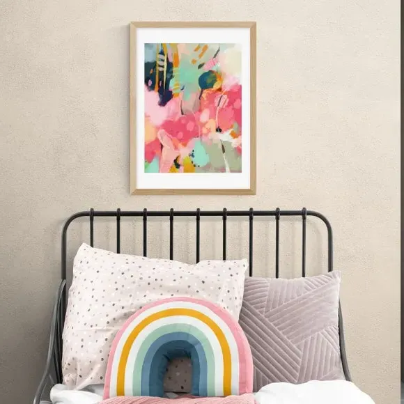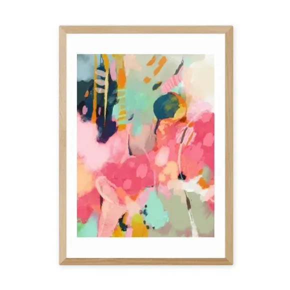 The abstract art print features vivid colours with an ambiguous painterly style in portrait orientation. Its Giclee printing process prevents fading, while the 210gsm acid-free archival paper ensures long-lasting vibrancy. The broad brush strokes add visual interest to any space, and multiple frame options including black, white, and oak wood effect allow versatile display choices.