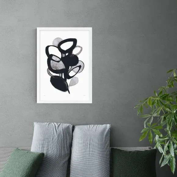 * Artwork by Jorgen Hansson* Abstract style* Printed on 210gsm acid-free archival paper* Available in A1, A2, A3 & A4 sizes* Frames available: black, white and oak effect* You can buy the print unframed too! This monochrome print is reminiscent of a plant and will look perfect with any home interior style. You are able to customise the size and frame for this print! Choose from a variety of frame options and then pick your size. This way you can find the best design to suit your home interior. Each piece of artwork has gone through a giclee printing process which will help the print stay vibrant for years to come to keep your home looking fresh.