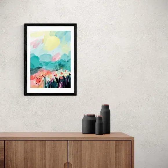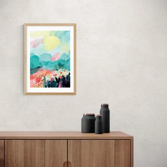 * Artwork by Ana Rut Bre* Abstract scene* Portrait orientation* Printed on 210gsm acid-free archival paper* Available in A1, A2, A3 & A4 sizes* Frame options: black, white and oak wood effect* Available in unframed option Start your day with this colourful, bright, painterly print featuring delicate shapes and translucent layers. Made using a Giclee printing process to prevent fading, this wonderful print features a soft painted scene which will stay vibrant for years to come . Each design is available in four print sizes and a variety of frame options, including unframed, so you can display your artwork however you wish.