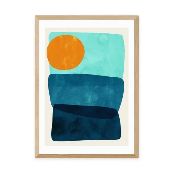 * Artwork by Tracie Andrews* Abstract style* Printed on 210gsm acid-free archival paper* Available in A1, A2, A3 & A4 sizes* Frames available: black, white and oak effect* You can buy the print unframed too! Almost looking like the sunset over the sea, this abstract print will bring tranquillity into your home. You are able to customise the size and frame for this print! Choose from a variety of frame options and then pick your size. This way you can find the best design to suit your home interior. Each piece of artwork has gone through a giclee printing process which will help the print stay vibrant for years to come to keep your home looking fresh.