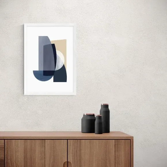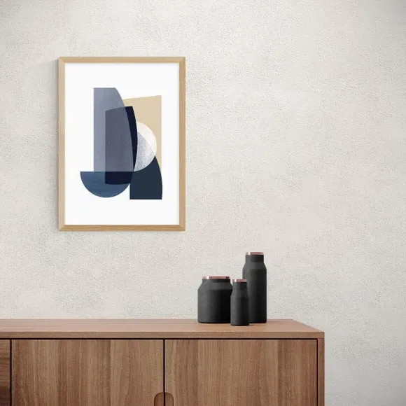 * Artwork by Anna Mainz* Abstract style* Portrait orientation* Printed on 210gsm acid-free archival paper* Available in A1, A2, A3 & A4 size* Frame options: black, white and oak wood effect* Available in unframed option Bring an oasis of calm to your living space with the tranquil blue tones and abstract shapes from this artwork by Anna Mainz. Made using a Giclee printing process to prevent fading, this print can add elegance, style and colour to your home and will stay vibrant for years to come. Each design is available in four print sizes and a variety of frame options, including unframed, so you can display your artwork however you wish.