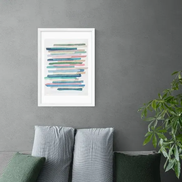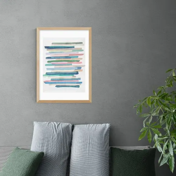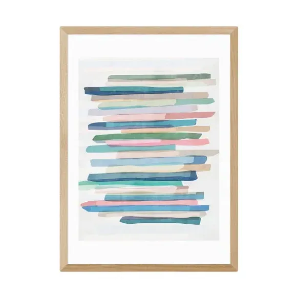 * Artwork by Mareike Boehmer* Abstract style* Printed on 210gsm acid-free archival paper* Available in A1, A2, A3 & A4 size* Frames available: black, white and oak effect* You can buy the print unframed too! This Mareike Boehmer artwork features calming pastel stripes that will bring a sense of tranquillity into your chosen room. You are able to customise the size and frame for this print! Choose from a variety of frame options and then pick your size. This way you can find the best design to suit your home interior. Each piece of artwork has gone through a giclee printing process which will help the print stay vibrant for years to come to keep your home looking fresh.