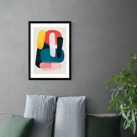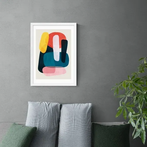 * Artwork by Tracie Andrews* Abstract shapes* Portrait orientation* Printed on 210gsm acid-free archival paper* Available in A1, A2, A3 & A4 size* Frame options: black, white and oak wood effect* Available in unframed option Bring a pop of colour to your living or dining space with this bright and uplifting colour palette from Tracie Andrews. Made using a Giclee printing process to prevent fading, this vivid abstract shape print can add a contemporary style to your home and will stay fresh for years to come. Each design is available in four print sizes and a variety of frame options, including unframed, so you can display your artwork however you wish.