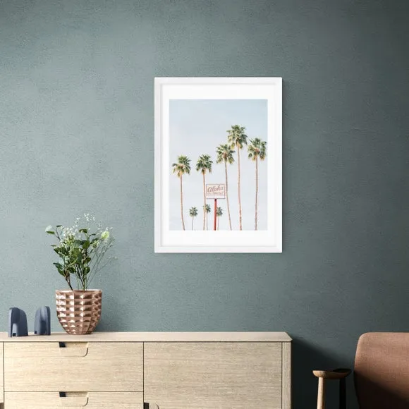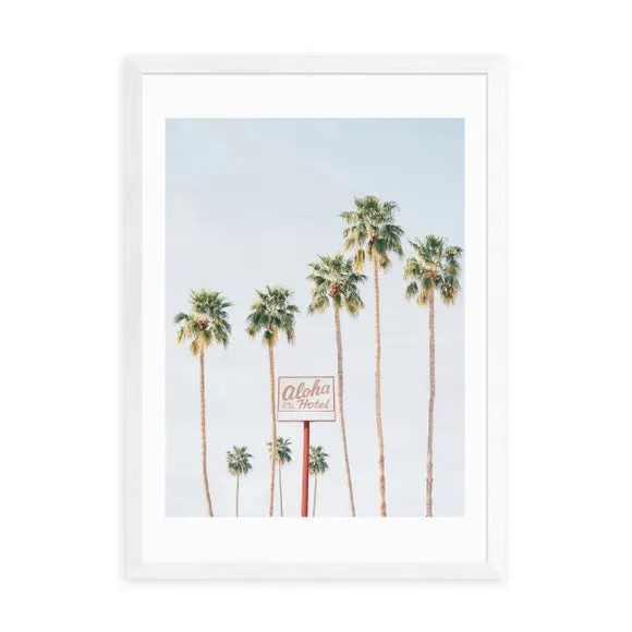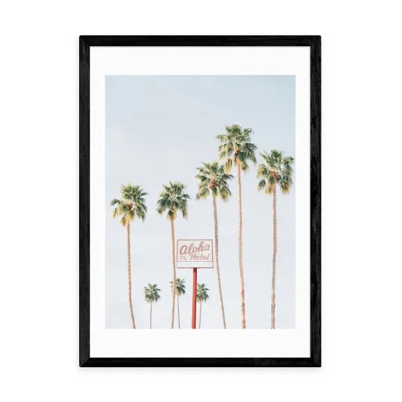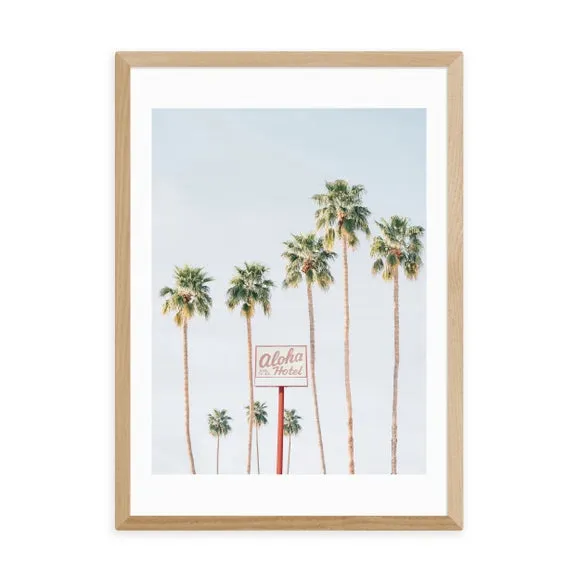 * Artwork by Sisi and Seb* Available in A1, A2, A3 & A4 sizes* Obeche Wood Frames available in black, white and oak effect* You can buy the print unframed too!* Prints are made using the Giclee printing process, lasting up to 70 years from fading* Printed on 210gsm acid free archival paper with a digital white border Say " Aloha" to tranquility with the Aloha Hotel print by Sisi and Seb. Featuring pastel blue skies, this serene photographic print is the perfect addition to your dressing room, adding a sense of calm and relaxation. You are able to customise the size and frame for this print! Choose from a variety of frame options and then pick your size. This way you can find the best design to suit your home interior.