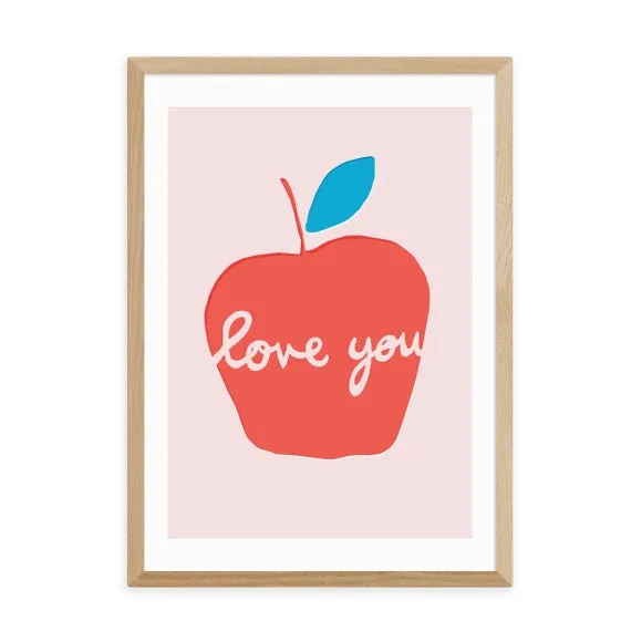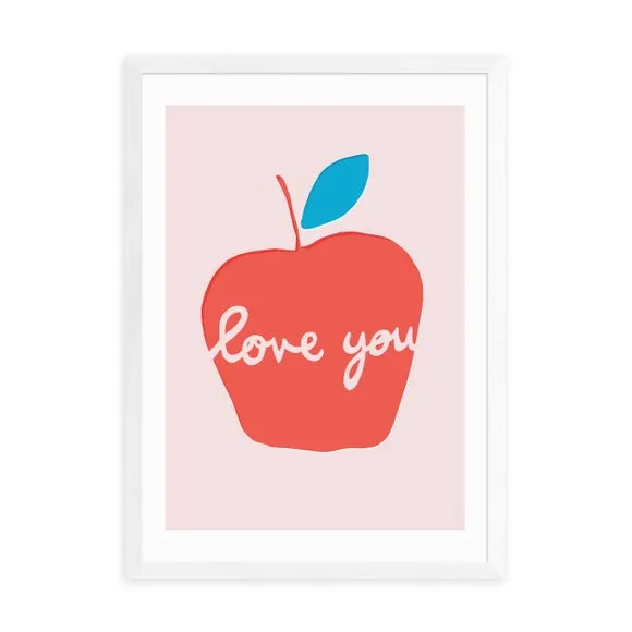 * Artwork by Francesca Iannaccone* Available in A1, A2, A3 & A4 sizes* Frames available: black, white and oak effect* You can buy the print unframed too! Bring a touch of imaginative sweetness to your décor with the " Apple Love You" Print by Francesca Iannaccone. This creatively designed art print is a charming addition to any space. You are able to customise the size and frame for this print! Choose from a variety of frame options and then pick your size. This way you can find the best design to suit your home interior. Each piece of artwork has gone through a giclee printing process which will help the print stay vibrant for years to come to keep your home looking fresh.