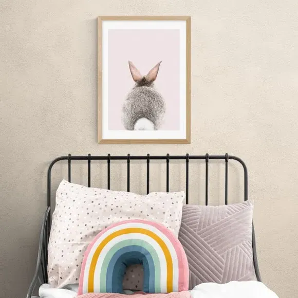 * Artwork by Sissi and Seb* Animals style* Printed on 210gsm acid-free archival paper* Available in A1, A2, A3 & A4 size* Frames available: black, white and oak effect* You can buy the print unframed too! Designed with a pastel pink background, this bunny tail is about to make your home cute! You are able to customise the size and frame for this print! Choose from a variety of frame options and then pick your size. This way you can find the best design to suit your home interior. Each piece of artwork has gone through a giclee printing process which will help the print stay vibrant for years to come to keep your home looking fresh.
