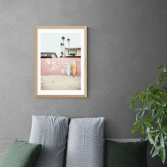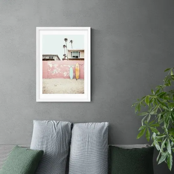 * Artwork by Sisi and Seb* Coastal/beach theme* Portrait orientation* Printed on 210gsm acid-free archival paper* Available in A1, A2, A3 & A4 size* Frame options: black, white and oak wood effect* Available in unframed option Every day can be a beach day with this brilliant beach photography by Sisi and Seb. Perfect for reminiscing fond beach memories, summer holidays and riding the waves, this artwork creates a relaxed feeling and is perfect for creating a chilled vibe with the pastel colours. Made to last using a Giclee printing process to stay vibrant and prevent fading over years, each design is available in three print sizes and a variety of frame options, including unframed, so you can display your artwork however you wish