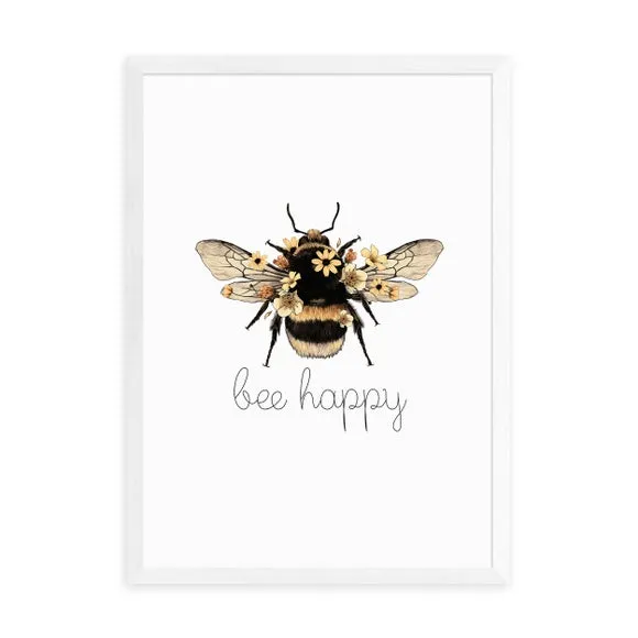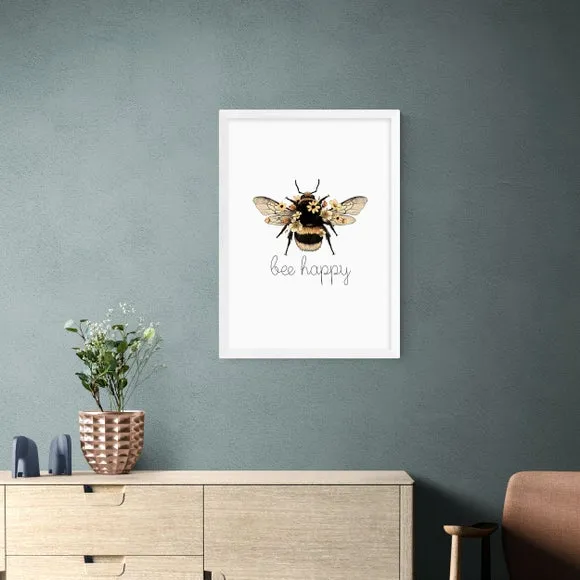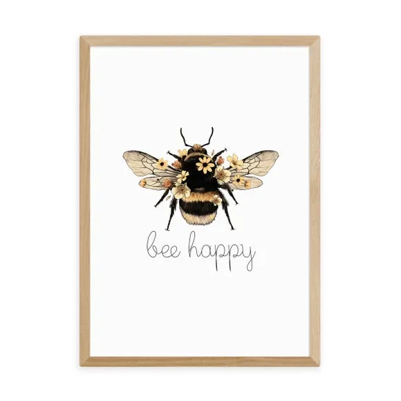 * Artwork by Mother & Sun Studio* Available in A1, A2, A3 & A4 sizes* Frames available: black, white and oak effect* You can buy the print unframed too! Spread joy and positivity with Bee Happy by Mother & Sun Studio, a delightful artwork that celebrates the little joys of life and adds a cheerful touch to your space. You are able to customise the size and frame for this print! Choose from a variety of frame options and then pick your size. This way you can find the best design to suit your home interior. Each piece of artwork has gone through a giclee printing process which will help the print stay vibrant for years to come to keep your home looking fresh.
