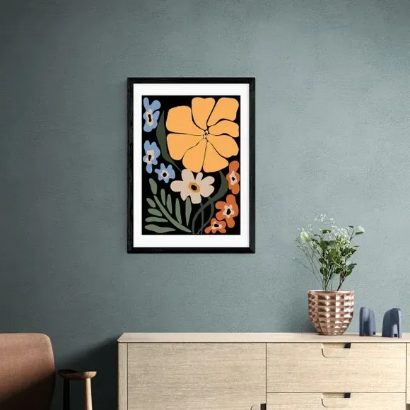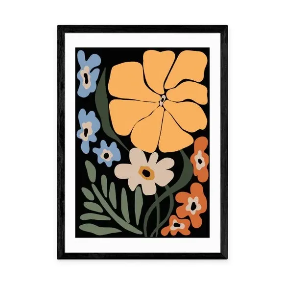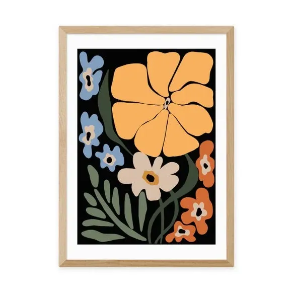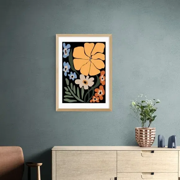 * Artwork by Miho Art Studio* Available in A1, A2, A3 & A4 sizes* Obeche Wood Frames available in black, white and oak effect* You can buy the print unframed too!* Prints are made using the Giclee printing process, lasting up to 70 years from fading* Printed on 210gsm acid free archival paper with a digital white border Immerse yourself in the enchanting beauty of 'Blooming Big Floral Night' by Miho Art Studio. Bursting with life and colour, this floral masterpiece brings a touch of elegance and charm to any room. You are able to customise the size and frame for this print! Choose from a variety of frame options and then pick your size. This way you can find the best design to suit your home interior.