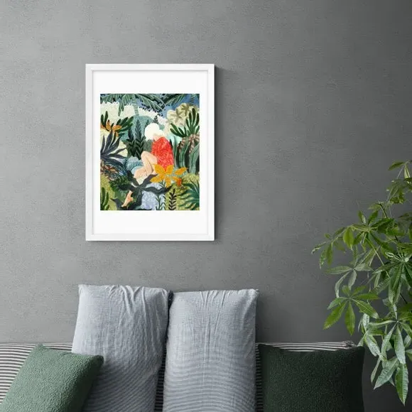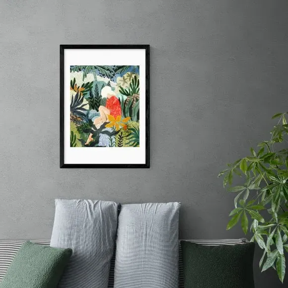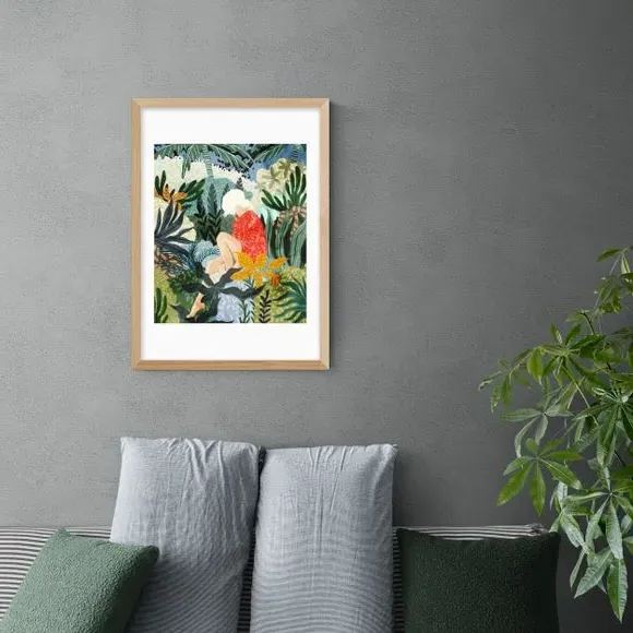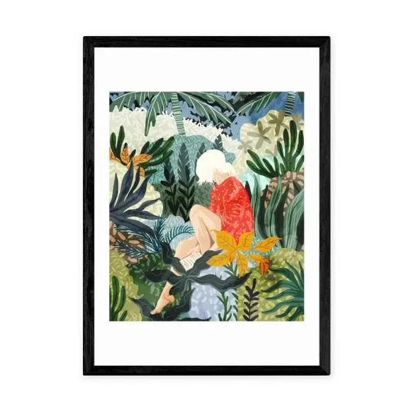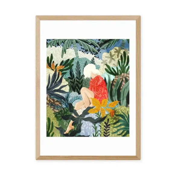 * Artwork by 83 Oranges* Floral and botanical themes* Portrait orientation * Printed on 210gsm acid-free archival paper* Available in A1, A2, A3 & A4 sizes * Frame options: black, white and oak wood effect * Available in an unframed option Bring a tropical vibe to your bedroom or home office with the vibrant and refreshing tones of this artwork by 83 Oranges. Made using a Giclee printing process to prevent fading, this striking print features a relaxing woman reading in a botanical leafy scene. Each design is available in four print sizes and a variety of frame options, including unframed, so you can display your artwork however you wish.