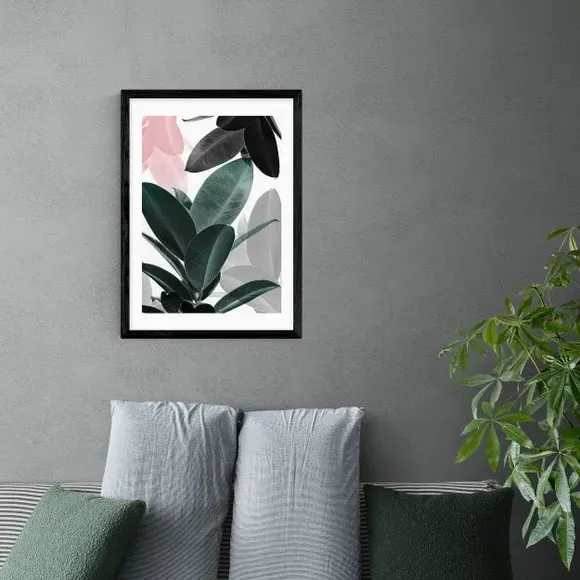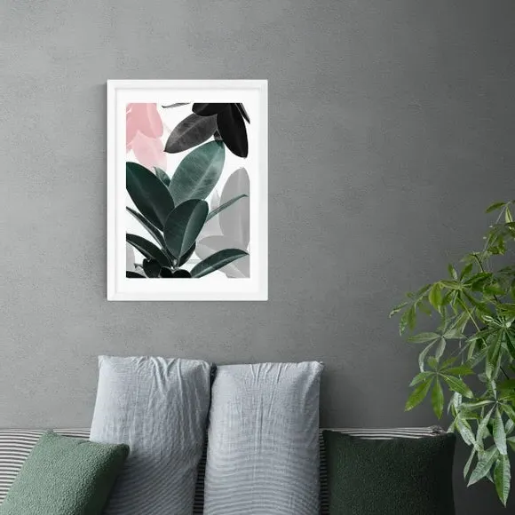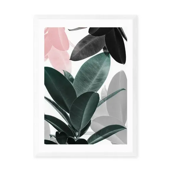 * Artwork by Sisi and Seb* Botanical theme* Portrait orientation* Printed on 210gsm acid-free archival paper* Available in A1, A2, A3 & A4 sizes* Frame options: black, white and oak wood effect* Available in unframed option Bringing a botanical touch to your home, this subtly colourful print features a layered leaf print in a close up shot for a refreshing touch of green, pink and grey tones to your walls. Made using a Giclee printing process to prevent fading, this print will stay vibrant for years to come and Each design is available in four print sizes and a variety of frame options, including unframed, so you can display your artwork however you wish.