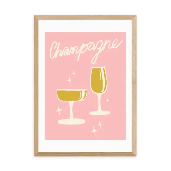 * Artwork by Tartagain* Typography design* Printed on 210gsm acid-free archival paper* Available in A1, A2, A3 & A4 sizes* Frames available: black, white and oak effect* You can buy the print unframed too! Cheers to a new refreshing print! With this champagne print your kitchen will be bold with colour. You are able to customise the size and frame for this print! Choose from a variety of frame options and then pick your size. This way you can find the best design to suit your home interior. Each piece of artwork has gone through a giclee printing process which will help the print stay vibrant for years to come to keep your home looking fresh.