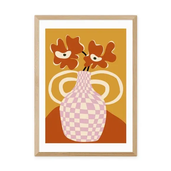 * Artwork by Miho Art Studio* Available in A1, A2, A3 & A4 sizes* Obeche Wood Frames available in black, white and oak effect* You can buy the print unframed too!* Prints are made using the Giclee printing process, lasting up to 70 years from fading* Printed on 210gsm acid free archival paper with a digital white border Add a retro charm to your space with 'Checkered Retro Flower Pot' by Miho Art Studio. Playful yet sophisticated, this artwork infuses your home with nostalgic flair and timeless style. You are able to customise the size and frame for this print! Choose from a variety of frame options and then pick your size. This way you can find the best design to suit your home interior.