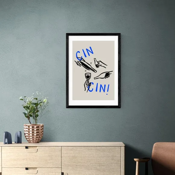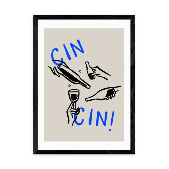 * Artwork by Simply Extra Jordanary* Available in A1, A2, A3 & A4 sizes* Obeche Wood Frames available in black, white and oak effect* You can buy the print unframed too!* Prints are made using the Giclee printing process, lasting up to 70 years from fading* Printed on 210gsm acid free archival paper with a digital white border Bring a sense of celebration to your decor with this playful Cin Cin print by Simply Extra Jordanary, perfect for enhancing the joy of shared moments. This print features a bold, minimalist design with bright blue and black lettering against a neutral background, adding a playful and modern flair to your decor. You are able to customise the size and frame for this print! Choose from a variety of frame options and then pick your size. This way you can find the best design to suit your home interior.