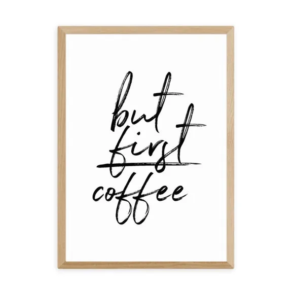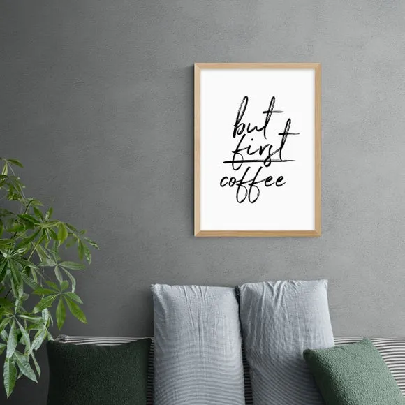 * Artwork by Rafael Farias* Typographic wording* Coffee related theme* Portrait orientation* Printed on 210gsm acid-free archival paper* Available in A1, A2, A3 & A4 size* Frame options: black, white and oak wood effect* Available in unframed option For productivity and positivity, start your daily tasks with a caffeine fix and this gentle reminder from Rafael Farias. Perfect for setting up in your home office or kitchen area, this monochrome typographic uses a Giclee printing process to prevent fading, so this artwork will remain fresh for years to come. Each design is available in four print sizes and a variety of frame options, including unframed, so you can display your artwork however you wish.