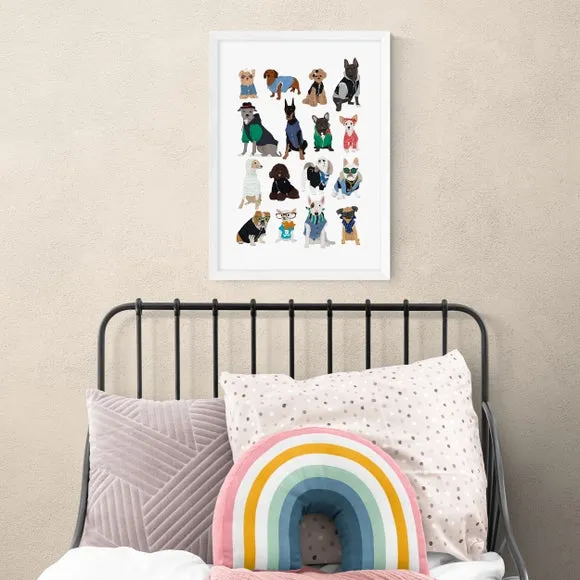 The Cool Dogs Wall Print features playful canine characters with vibrant multicolor artwork by Hanna Melin. Available in A1, A2, A3, and A4 sizes, this print offers flexible display options to suit different spaces. The giclee printing process ensures long-lasting color vibrancy and quality. Frame options include black, white, and oak effect finishes, or the print can be purchased unframed for custom framing solutions.