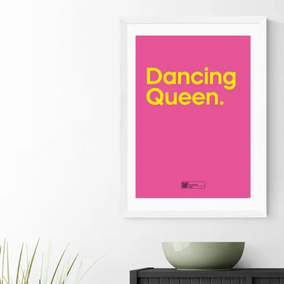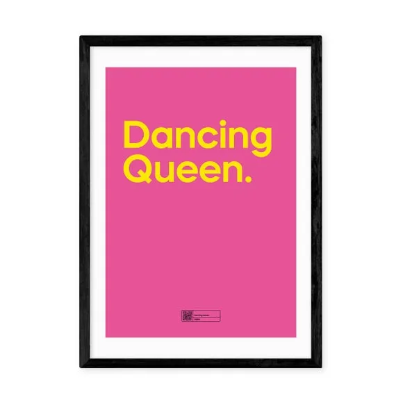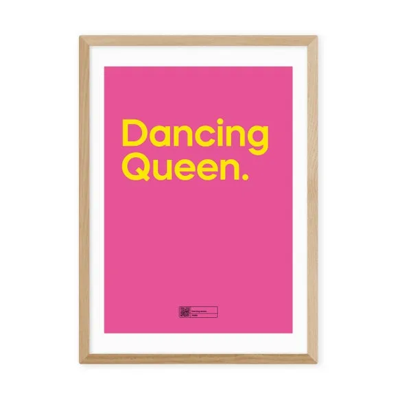 * Bright pink and orange design* Great for fans of Abba* Fade-resistant print* Printed on 210gsm acid-free archival paper* Available in A1, A2, A3 & A4 sizes* Frame options: black, white and oak wood effect* Available in an unframed option Fans of Abba will love this 'Dancing Queen' print, featuring bold and vibrant orange typography on a vivid pink base. The Giclee printing process ensures fade-resistant colour which will last for years to come. Available in multiple sizes, unframed, or in a black, white or oak wood effect solid Obeche wood frame - the choice is yours!
