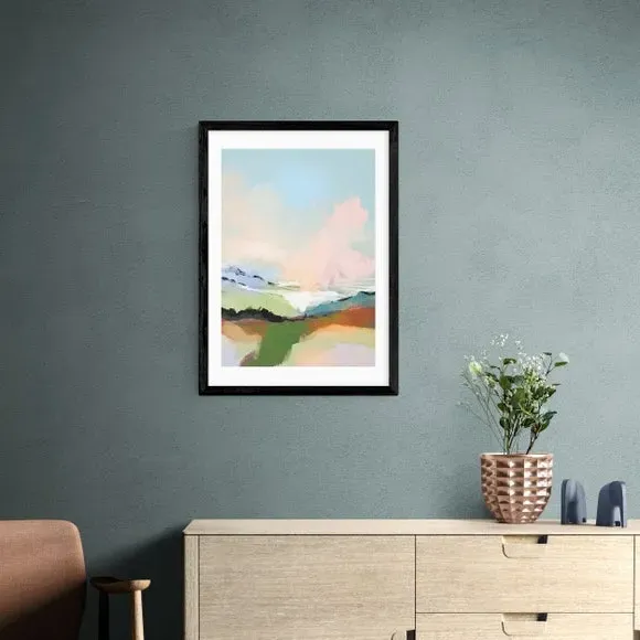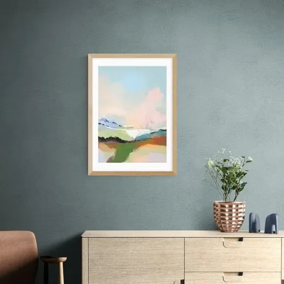 * Artwork by Dan Hobday* Available in A1, A2, A3 & A4 sizes* Obeche Wood Frames available in black, white and oak effect* You can buy the print unframed too!* Prints are made using the Giclee printing process, lasting up to 70 years from fading* Printed on 210gsm acid free archival paper with a digital white border Let your imagination wander through the ethereal beauty of 'Dream Landscape' by Dan Hobday. Serene and captivating, this piece invites you to lose yourself in a world where reality meets the sublime. You are able to customise the size and frame for this print! Choose from a variety of frame options and then pick your size. This way you can find the best design to suit your home interior.