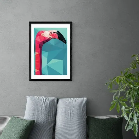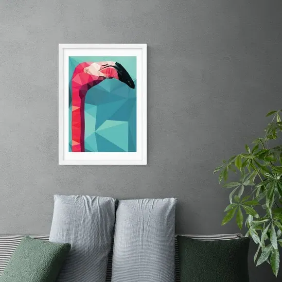 The Flamingo Head Print offers vibrant animal-style artwork with its giclee printing process on 210gsm acid-free archival paper. Available in A1, A2, A3, and A4 sizes, it provides flexibility to suit different spaces while maintaining color vibrancy for years. The print comes with frame options in black, white, and oak effect finishes, or can be purchased unframed. Its archival-quality paper construction ensures long-lasting durability and fade resistance.