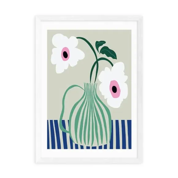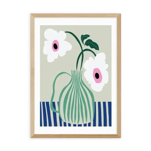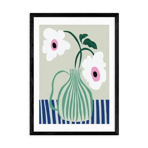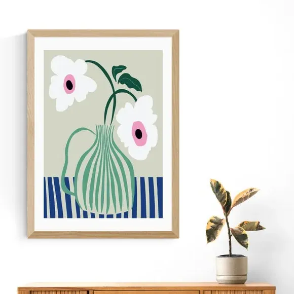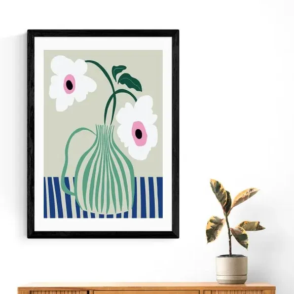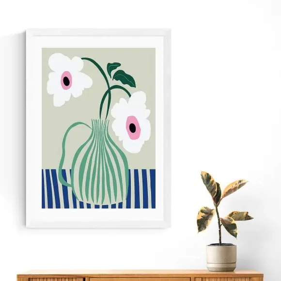 * Retro style floral print* Fade-resistant* Printed on 210gsm acid-free archival paper* Available in A1, A2, A3 & A4 size* Frame options: black, white and oak wood effect* Available in unframed option Add colourful character to your space with this Floral Pottery Delight Print. Available in multiple sizes and solid wood frame options or unframed for display in a style of your choice, this print is fade-resistant and will bring colour and interest to any room.