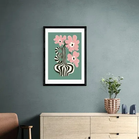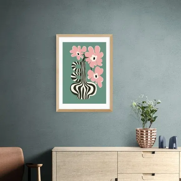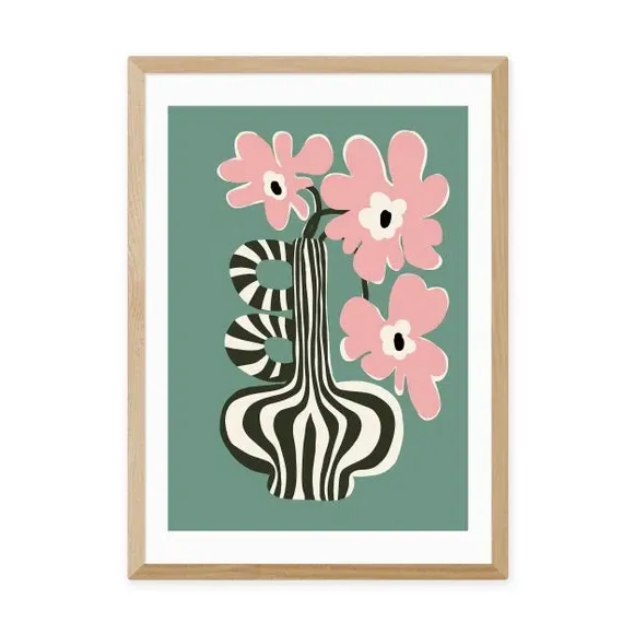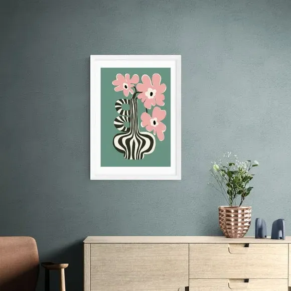 * Artwork by Miho Art Studio* Available in A1, A2, A3 & A4 sizes* Obeche Wood Frames available in black, white and oak effect* You can buy the print unframed too!* Prints are made using the Giclee printing process, lasting up to 70 years from fading* Printed on 210gsm acid free archival paper with a digital white border Elevate your decor with the timeless elegance of 'Floral Stripe' by Miho Art Studio. Delicate blooms against a backdrop of stripes create a sense of timeless beauty, adding a touch of sophistication to any room. You are able to customise the size and frame for this print! Choose from a variety of frame options and then pick your size. This way you can find the best design to suit your home interior.