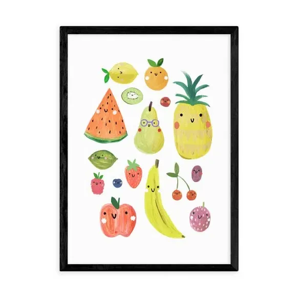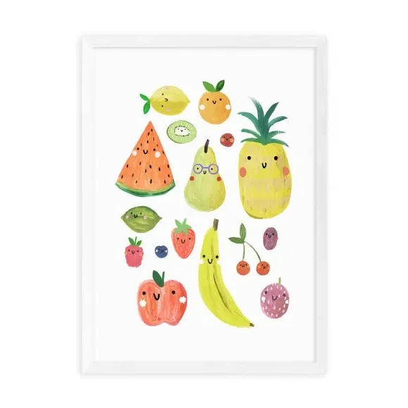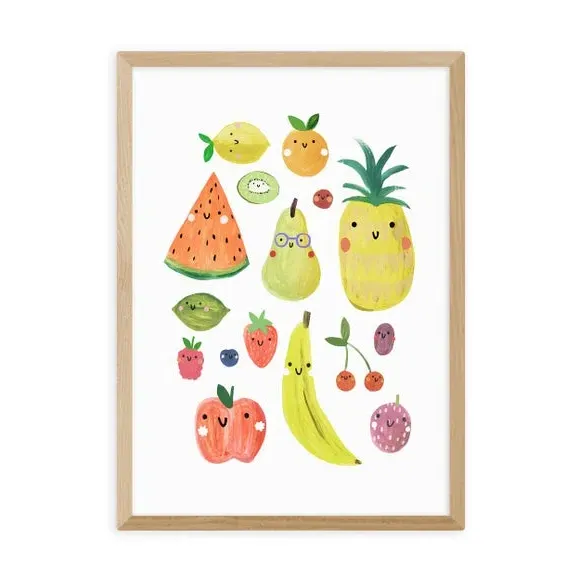 * Cute and characterful fruit design* Colourful, fade-resistant print* Printed on 210gsm acid-free archival paper* Available in A1, A2, A3 & A4 size* Frame options: black, white and oak wood effect* Available in unframed option Add a touch of fun to your walls with this quirky fruit print. These colourful characters are printed using a fade-resistant process to ensure vibrant colour over time. Available in a range of sizes and frame options, you can also opt for unframed so that you can choose your own frame. This print is perfect for bringing colour and interest to your living space.