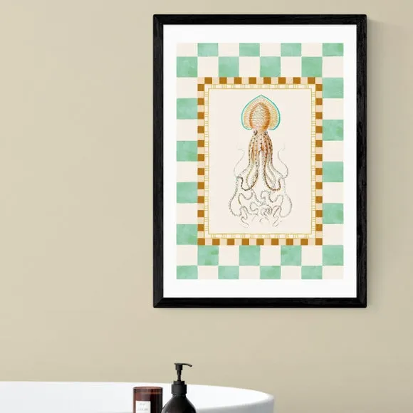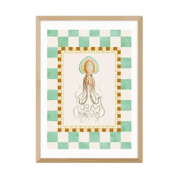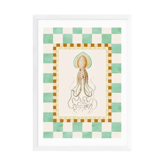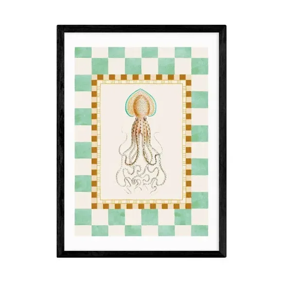 * Artwork by Oh Fine! Art* Nature style* Available in A1, A2, A3 & A4 sizes* Giclee printing process lasting up to 70 years from fading* Printed on 210gsm acid-free archival paper* Frames available: black, white and oak effect* Also available unframed Vibrant, quirky, and full of underwater charm — this nature-inspired squid print by Oh Fine! Art adds a splash of fun to any room. Its playful design and bold colours make it a standout piece for sea life lovers. East End Prints are proudly printed and made in the UK, with a royalty paid to the artist for every print sold.