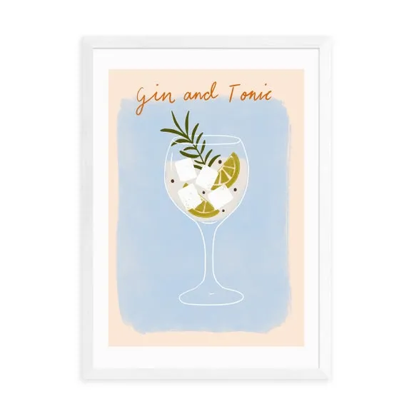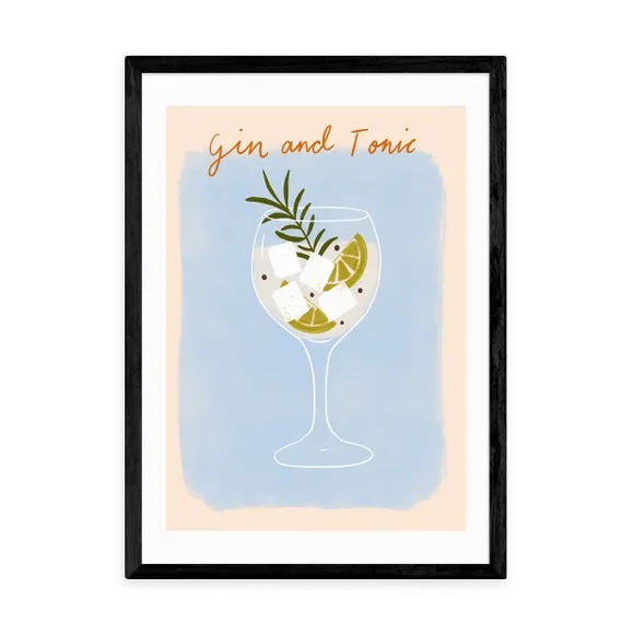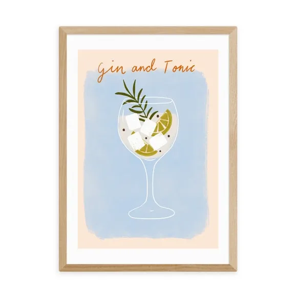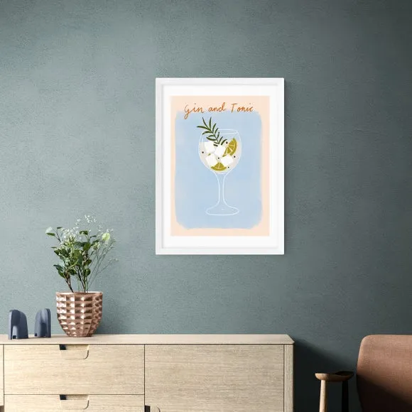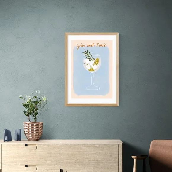 * Artwork by Emmy Lupin Studio* Available in A1, A2, A3 & A4 sizes* Obeche Wood Frames available in black, white and oak effect* You can buy the print unframed too!* Prints are made using the Giclee printing process, lasting up to 70 years from fading* Printed on 210gsm acid free archival paper with a digital white border Raise a toast to the classic duo with " Gin And Tonic" by Emmy Lupin Studio. With its light tan and blue hues, this print celebrates the timeless charm of the iconic drink, making it an ideal choice for your kitchen or bar. You are able to customise the size and frame for this print! Choose from a variety of frame options and then pick your size. This way you can find the best design to suit your home interior.