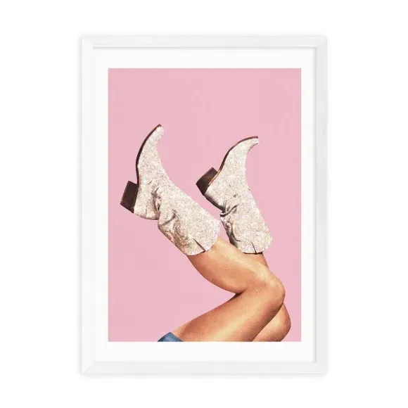 * Glamorous glitter boots design* Bright pink background* Printed on 210gsm acid-free archival paper* Available in A1, A2, A3 & A4 size* Frame options: black, white and oak wood effect* Available in unframed option Bring a touch of glamour to your space with this fun print, featuring glittery boots on a vibrant pink background. Perfect for adding colour and character to your space, it has been printed using a fade resistant process to keep those colours bright over time. Choose from an array of frame options and sizes, including unframed for display in your choice of frame.