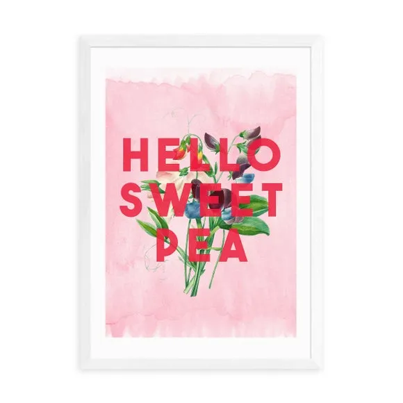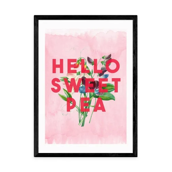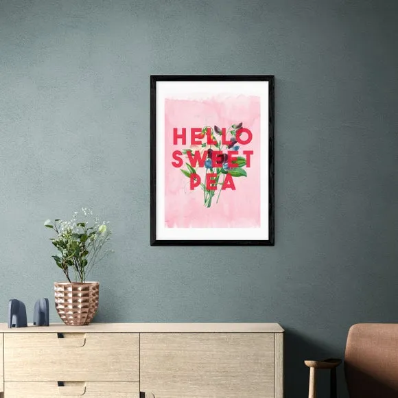 * Artwork by The 13 Prints* Available in A1, A2, A3 & A4 sizes* Frames available: black, white and oak effect* You can buy the print unframed too! Embrace the joyous charm of the " Hello Sweet Pea" Print by The 13 Prints. Radiating warmth and sweetness, this art print is perfect for infusing your space with delightful positivity. You are able to customise the size and frame for this print! Choose from a variety of frame options and then pick your size. This way you can find the best design to suit your home interior. Each piece of artwork has gone through a giclee printing process which will help the print stay vibrant for years to come to keep your home looking fresh.