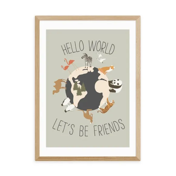 * Artwork by Mother & Sun Studio* Available in A1, A2, A3 & A4 sizes* Frames available: black, white and oak effect* You can buy the print unframed too! Celebrate the beauty of new beginnings with the " Hello World" Print by Mother & Sun Studio. This cheerful and welcoming art piece is a perfect choice for spaces that embrace the joy of fresh starts. You are able to customise the size and frame for this print! Choose from a variety of frame options and then pick your size. This way you can find the best design to suit your home interior. Each piece of artwork has gone through a giclee printing process which will help the print stay vibrant for years to come to keep your home looking fresh.