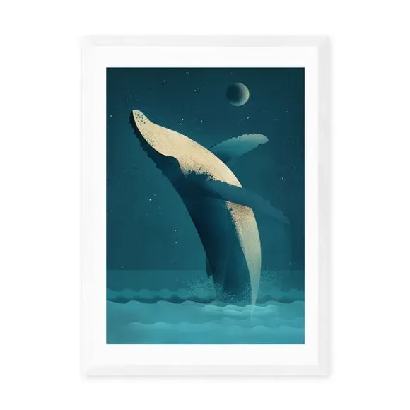 * Artwork by Dieter Braun* Animals style* Printed on 210gsm acid-free archival paper* Available in A1, A2, A3 & A4 sizes* Frames available: black, white and oak effect* You can buy the print unframed too! Elegance at its finest. This humpback whale is jumping out of the water in hopes of jumping onto your wall. The rich blue and green tones will look great as a statement piece within your home. You are able to customise the size and frame for this print! Choose from a variety of frame options and then pick your size. This way you can find the best design to suit your home interior. Each piece of artwork has gone through a giclee printing process which will help the print stay vibrant for years to come to keep your home looking fresh.